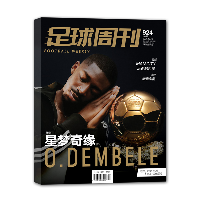 赠凯恩 金球奖得主奥斯曼·登贝莱封面 乔布·贝林厄姆海报 足球周刊杂志2025年924期 官方正版