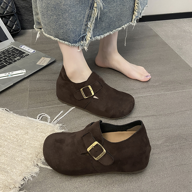 子休闲全包博肯单鞋 厚底内增高勃肯鞋 一脚蹬豆豆鞋 新款 女2025秋季