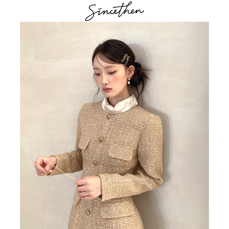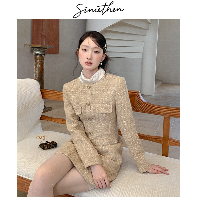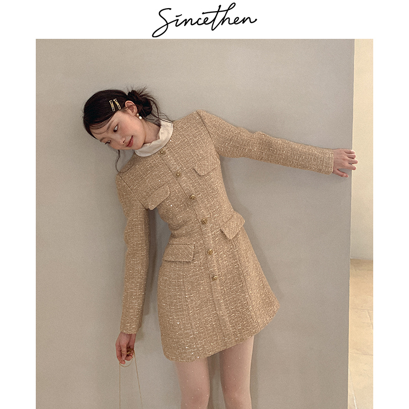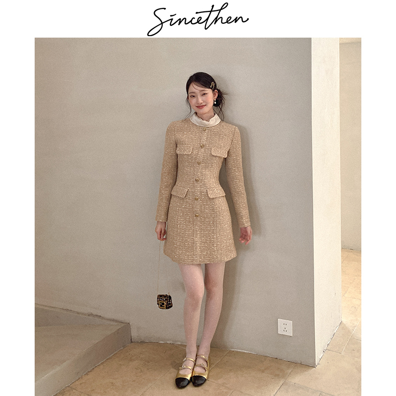 sincethen法式 复古连衣裙小香风短裙秋a字裙子高级感轻礼服女秋季