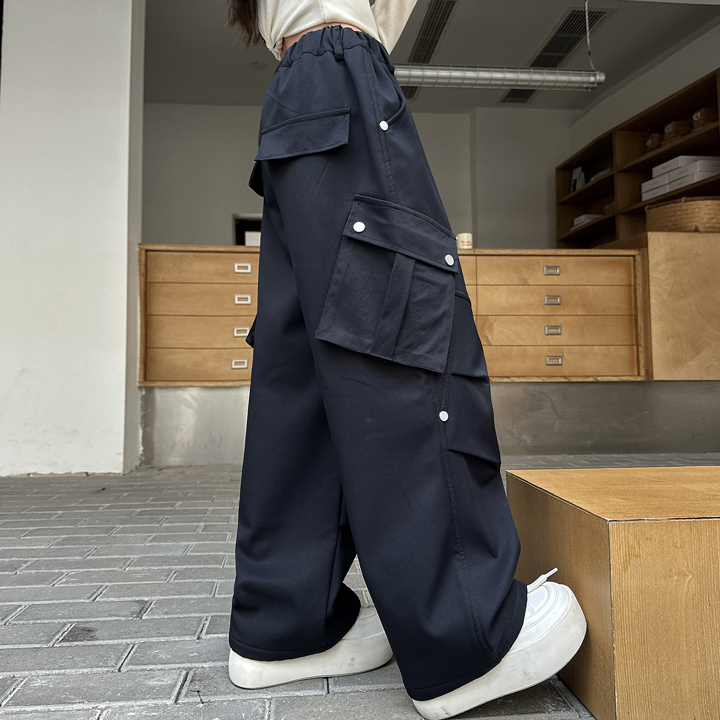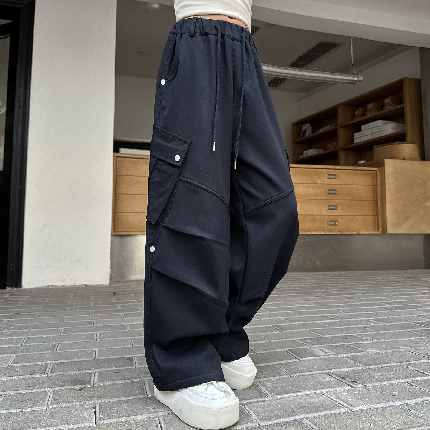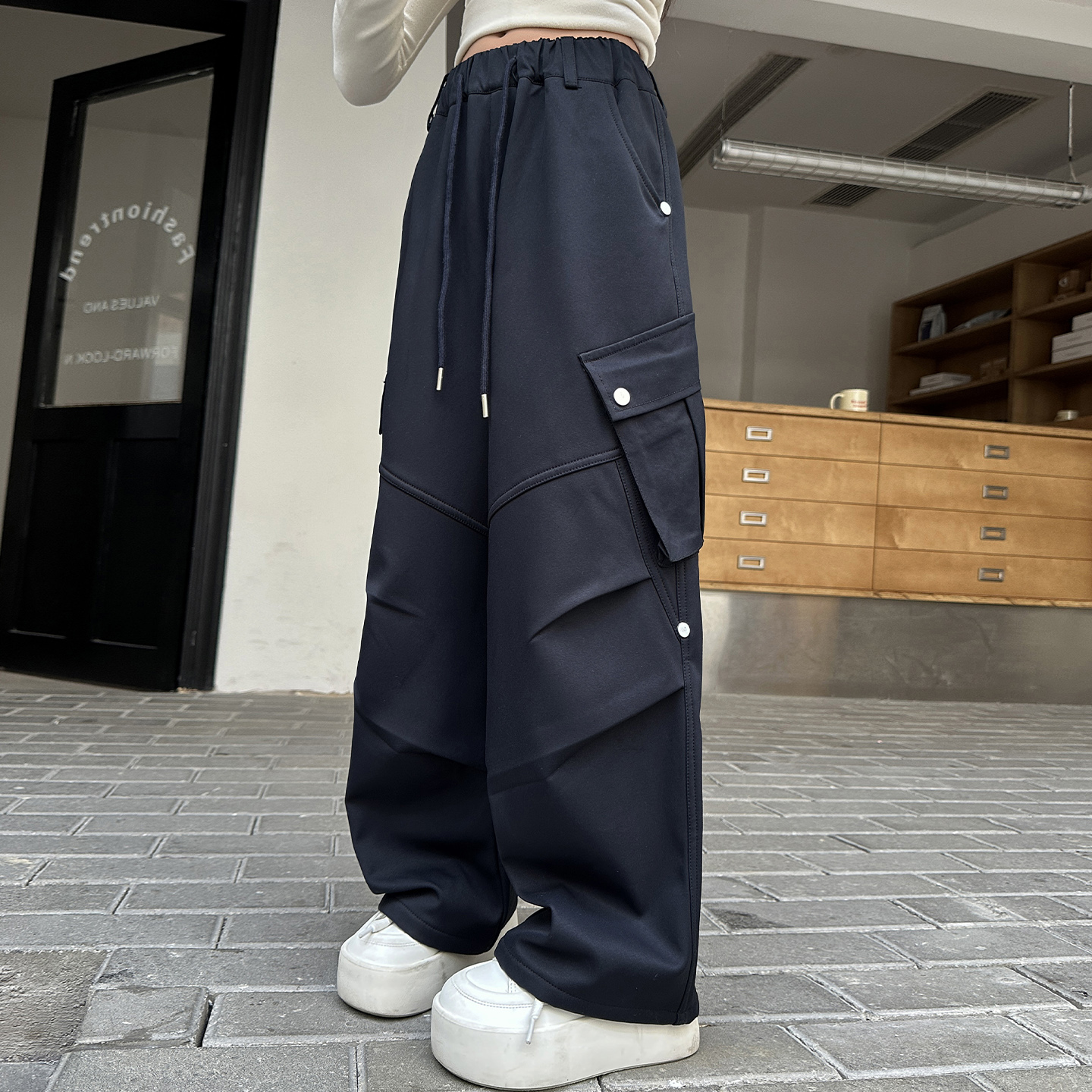 vintage纯色宽松阔腿裤 美式 子 男秋季 V37重磅活页解构剪裁弯刀卫裤