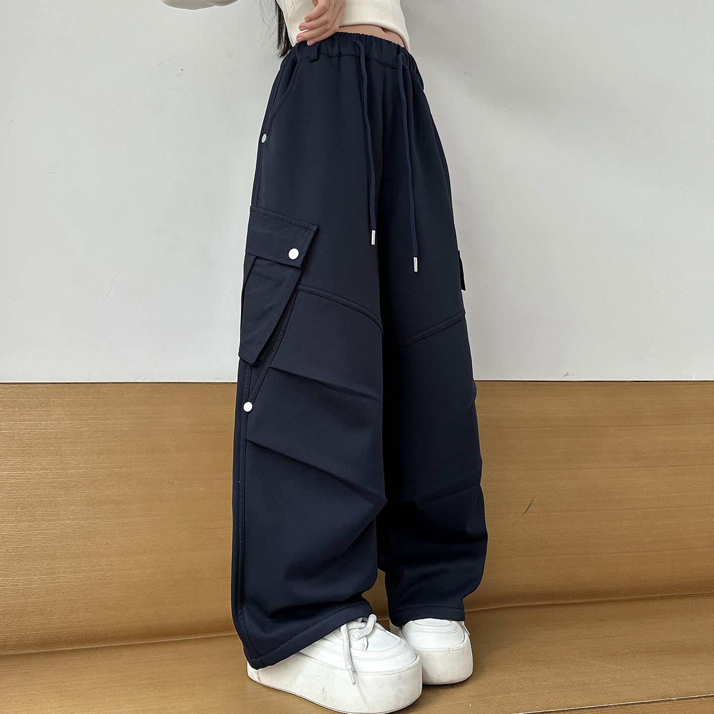 束脚休闲卫裤 阔腿棉裤 子 女秋冬加绒直筒宽松美式 灰色羊羔绒运动裤