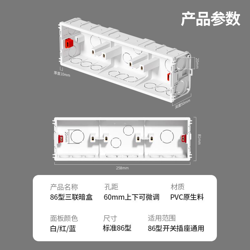 86型暗盒通用暗装 三槽盒开关插座面板三联底盒暗线盒50mm深接线盒