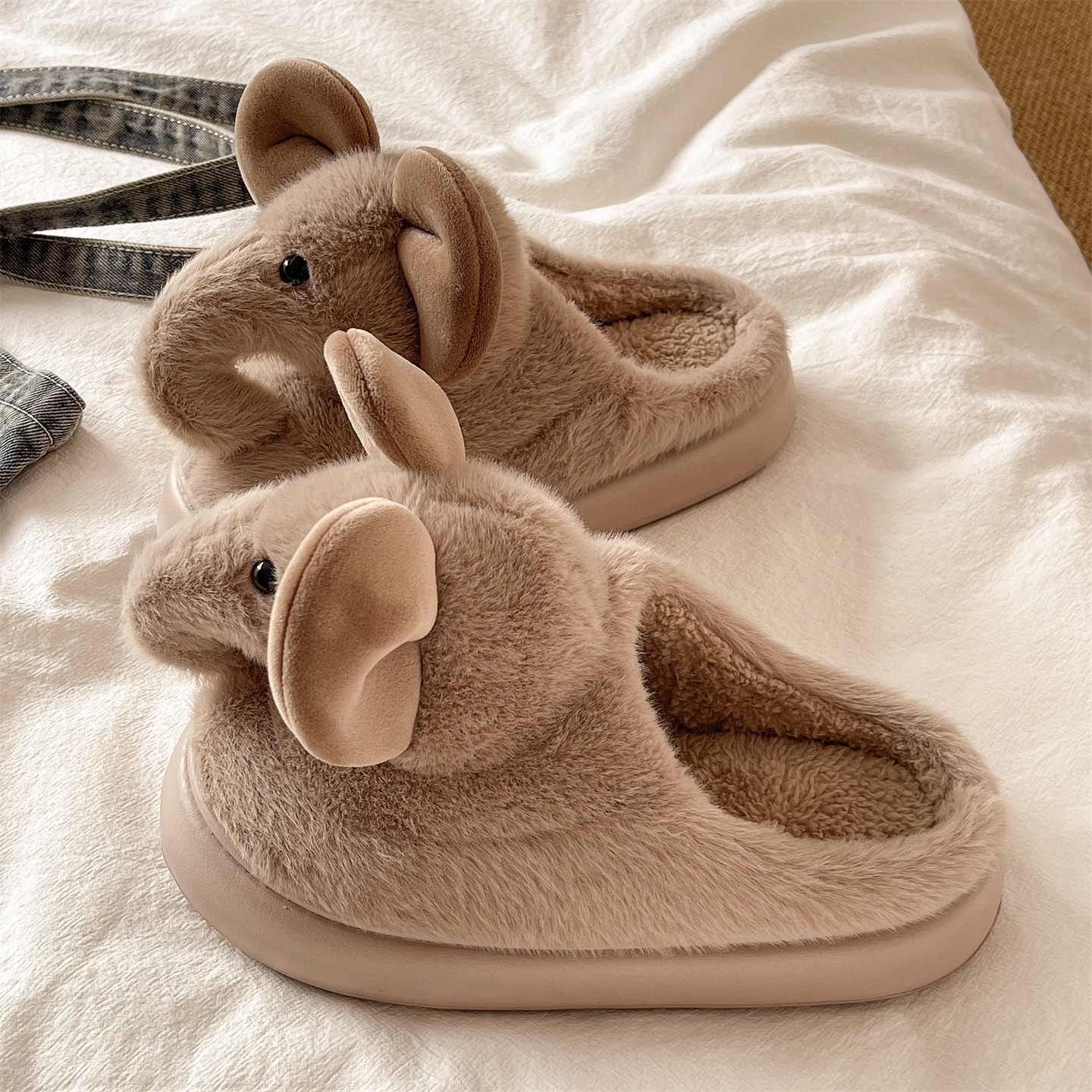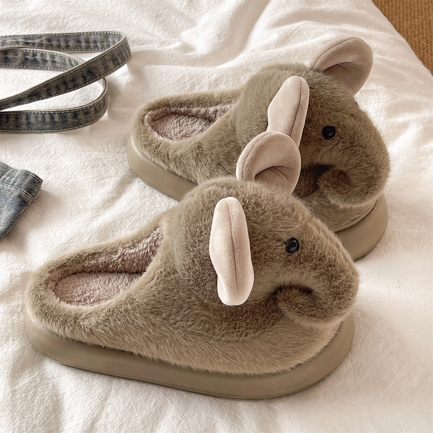 朴西朵朵绒情侣毛绒棉拖鞋 女士秋冬保暖防滑抗菌居家室内毛毛拖鞋