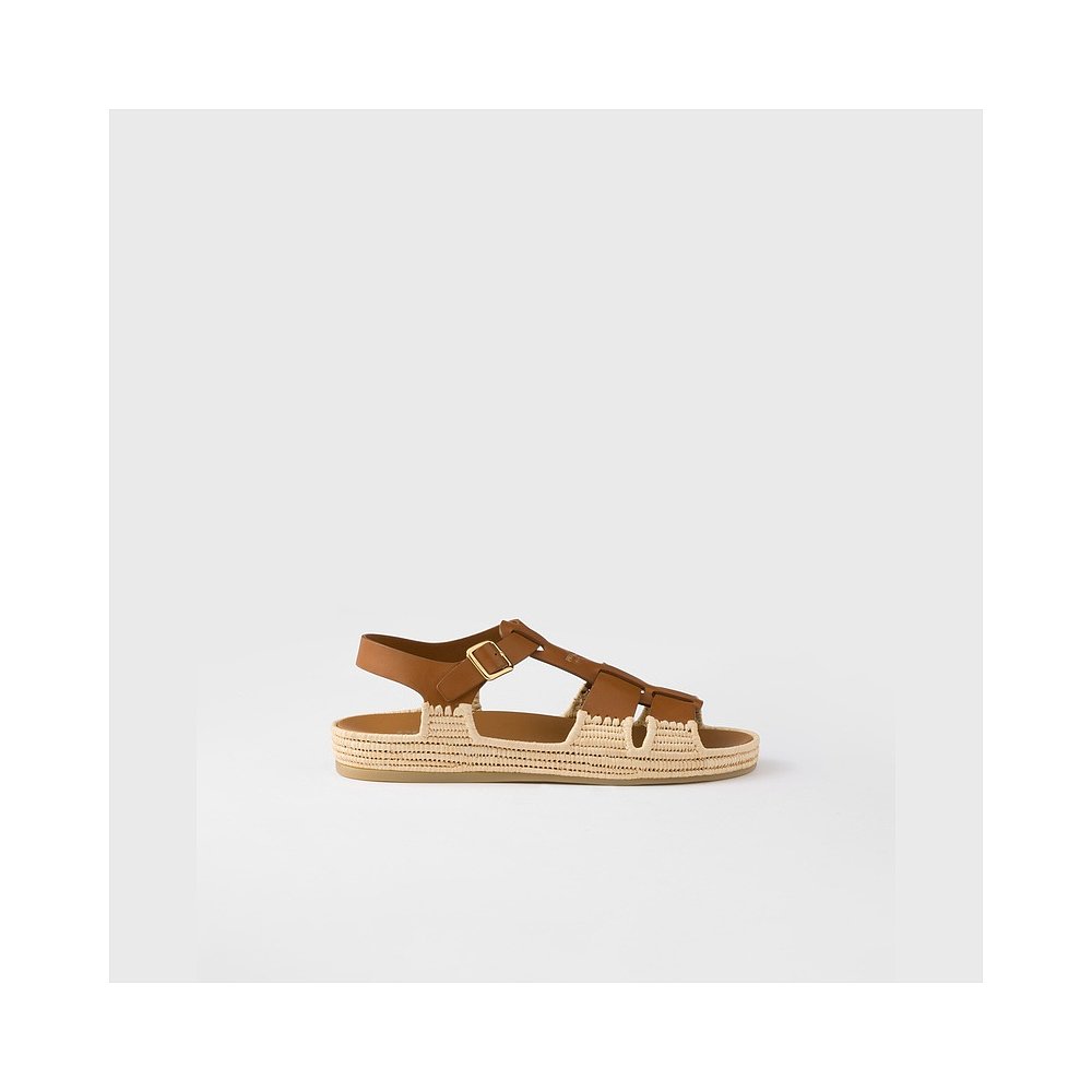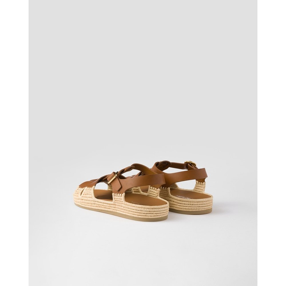 自营欧洲直邮Prada普拉达 女士浅黄褐色小牛皮藤编编织凉鞋