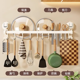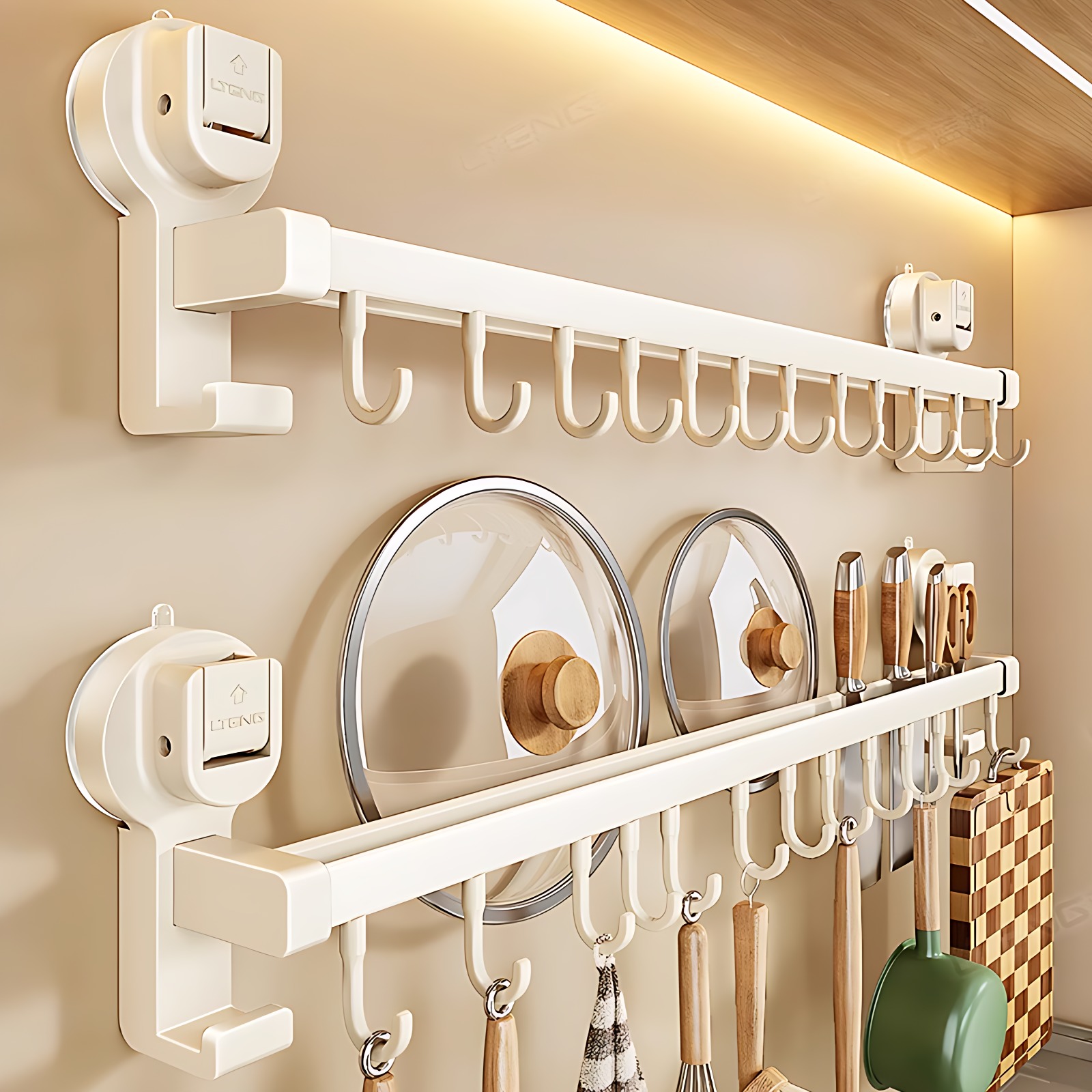 德国厨房奶白吸盘置物架刀架挂杆挂钩家用挂墙厨具铲子锅盖收纳架