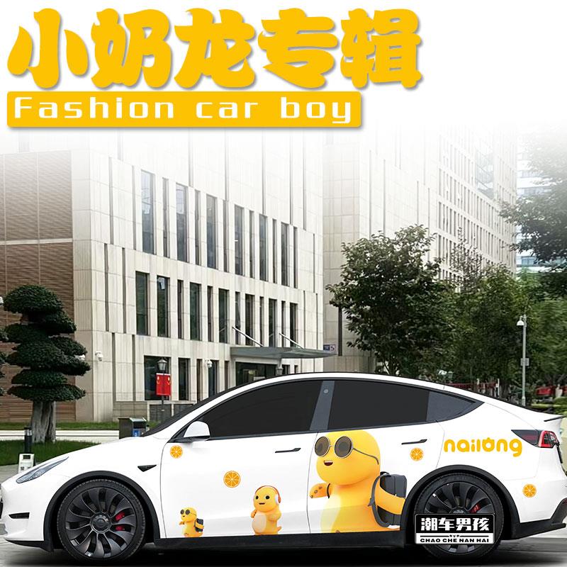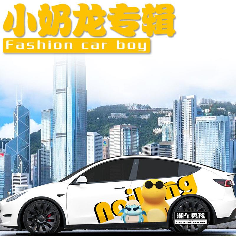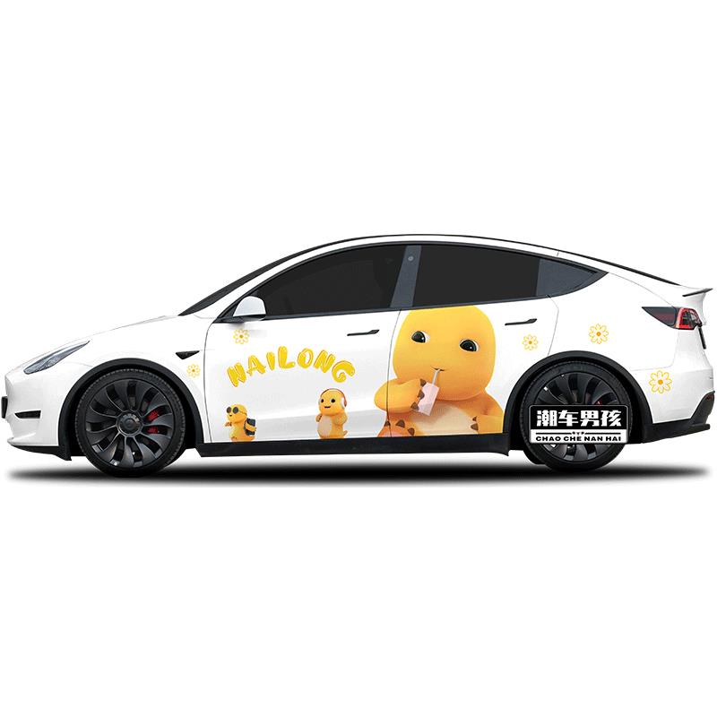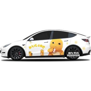 适用于特斯拉modelY 定制 极氪001车贴可爱卡通奶龙两侧车身贴个性