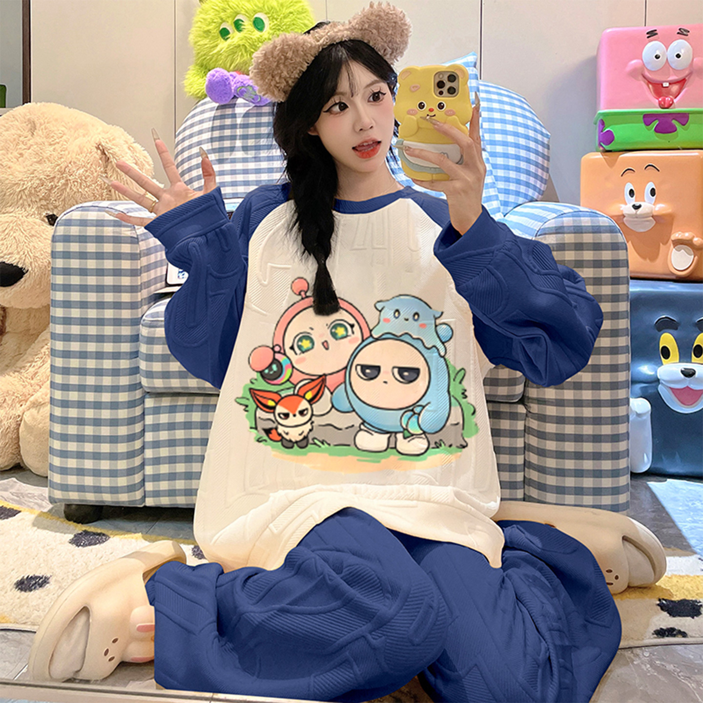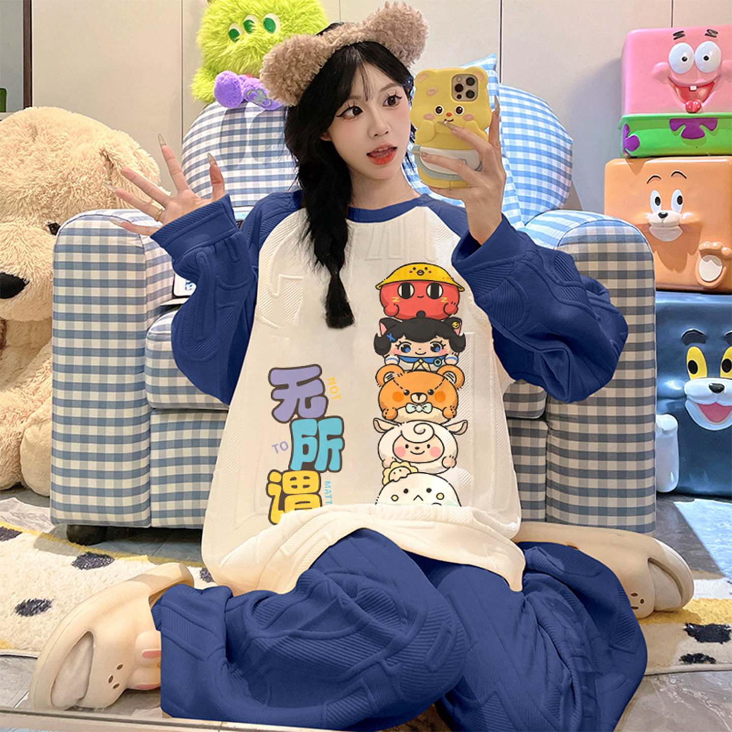 巨柔软 男女家居服套装 纯棉睡衣情侣春秋款 宽松大码 长袖 安之伴