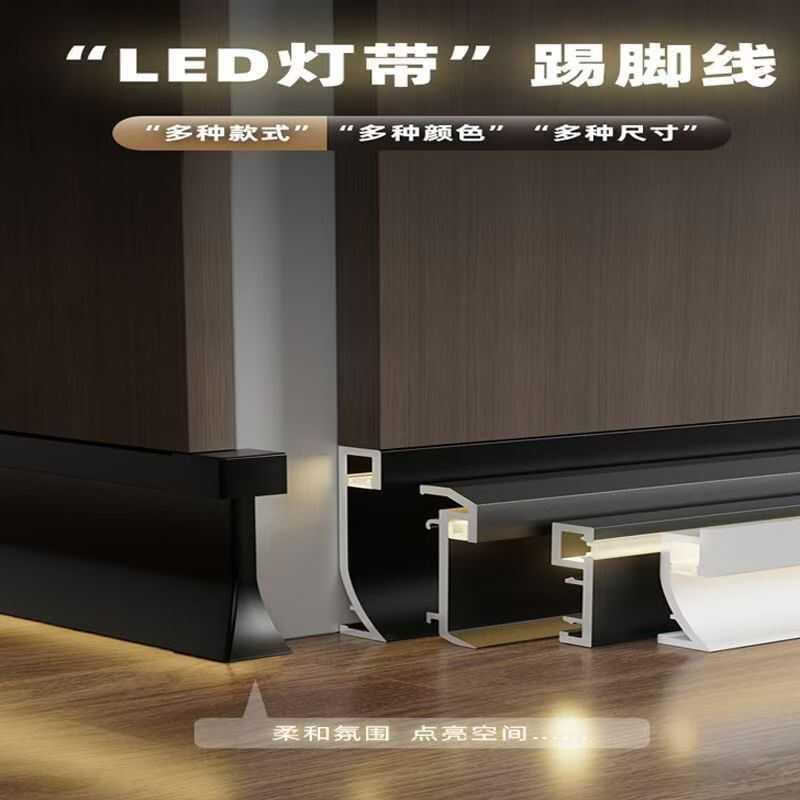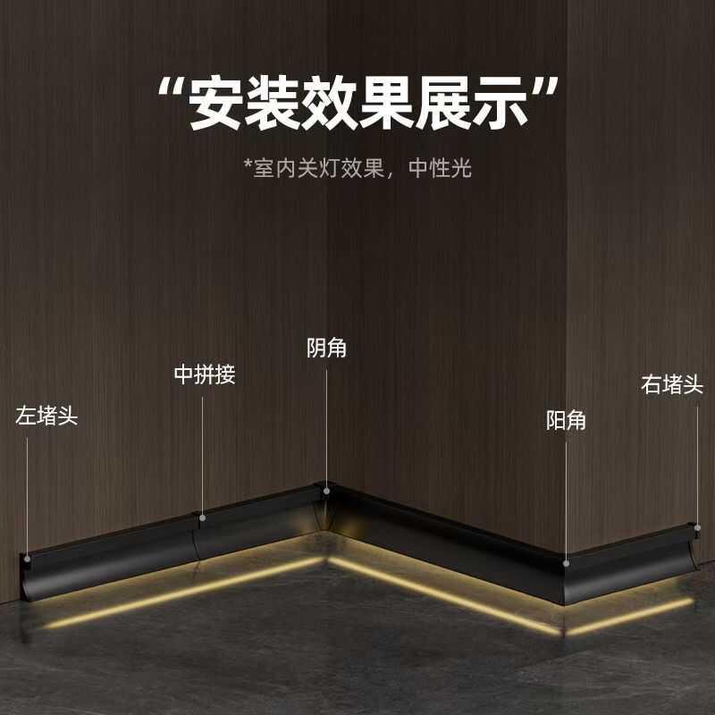 灯带踢脚线铝合金发光感应灯黑色金属条8cm封边装 饰条地角地脚线