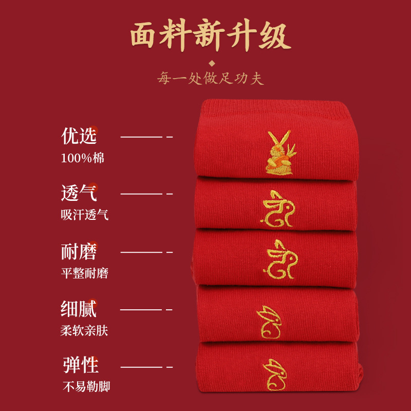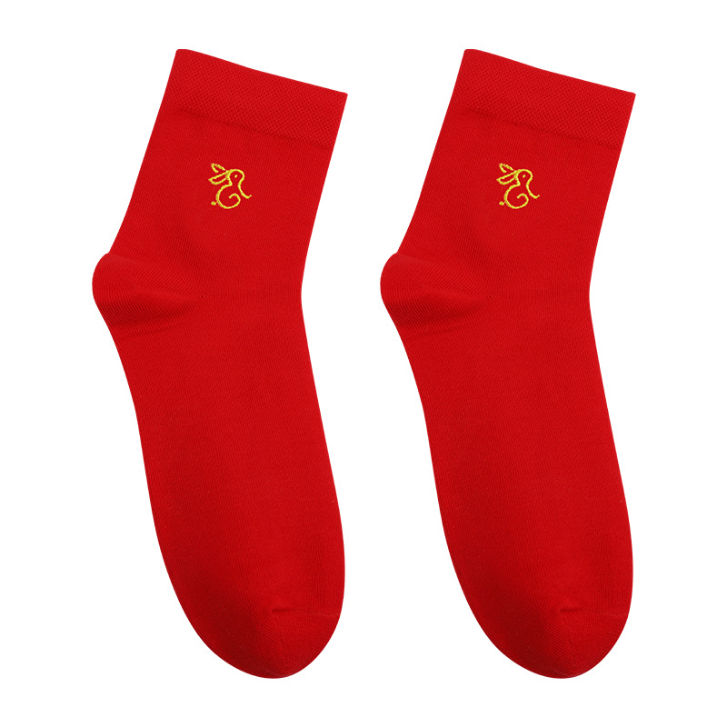 浪莎本命年红袜子女属兔年纯棉秋冬季 结婚情侣红色礼物 中筒袜男士