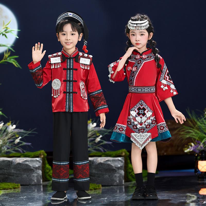 儿童广西壮族少数民族服装 男女演出服饰彝苗土家族表演衣服三月三