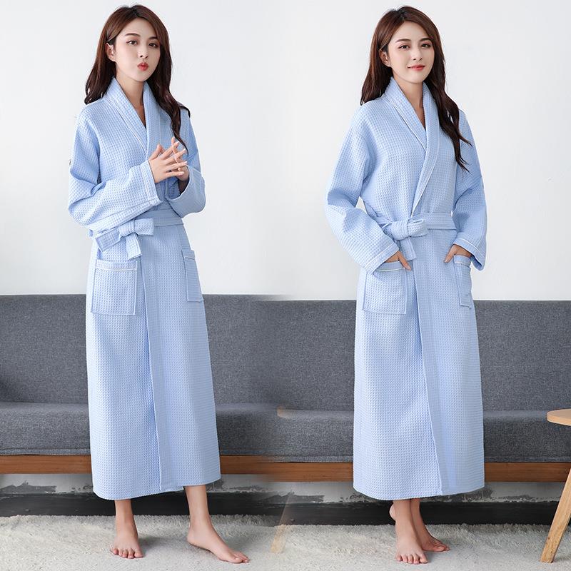 情侣睡袍温泉男士 秋冬浴袍女华夫格中长款 季 长袖 浴衣1009c 秋款