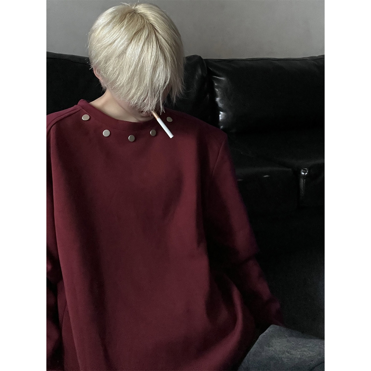 MardiMercredi摇尾珍珠小狗插肩薄卫衣短款 黑粉腊肠狗上衣女新款