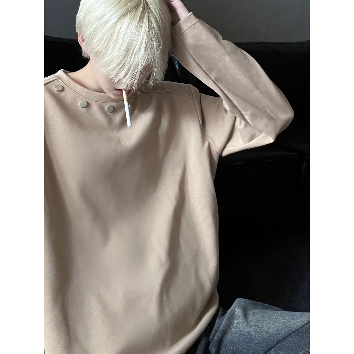 内搭宽松纯色白打底衫 t恤男秋冬季 加绒圆领卫衣 420G重磅长袖 美式
