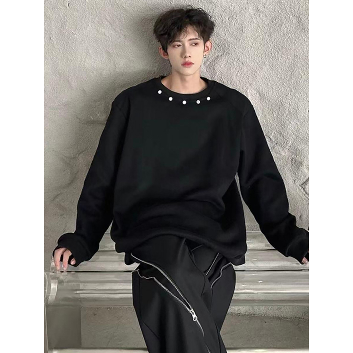圆领无帽纯色青少年J 款 MZWZ卫衣男女2025新款 连帽黑色外套秋季