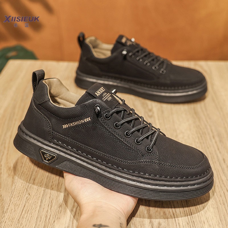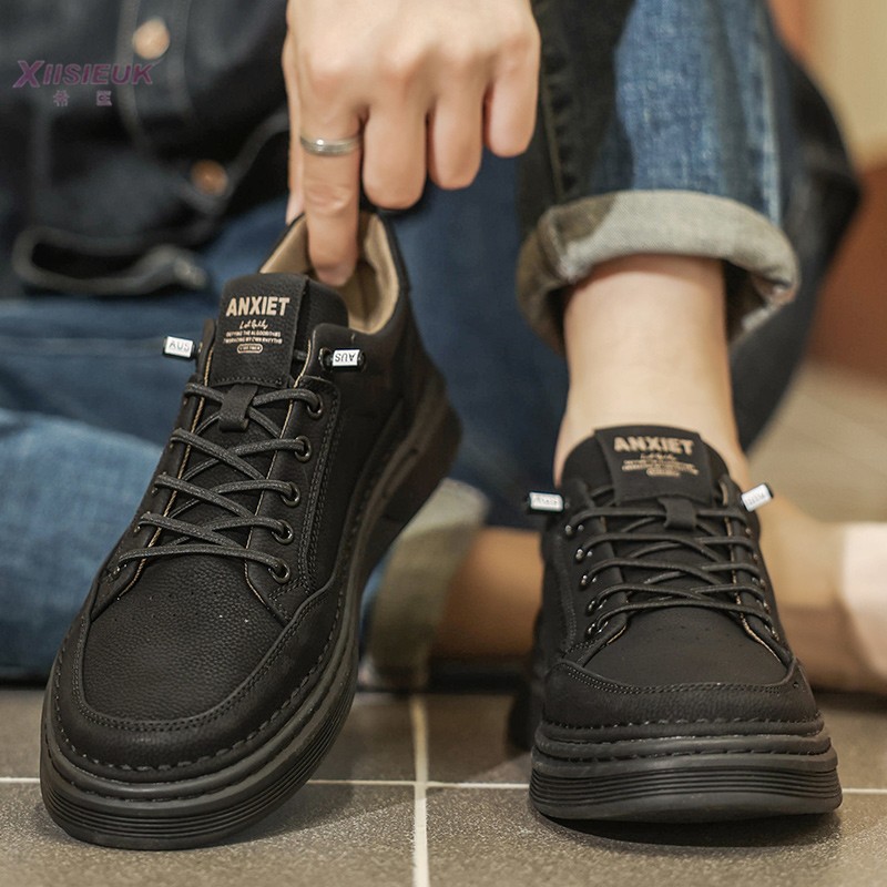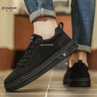 通勤工作皮面板鞋 黑色男鞋 英伦风免系带一脚蹬男士 秋冬季 2025新款