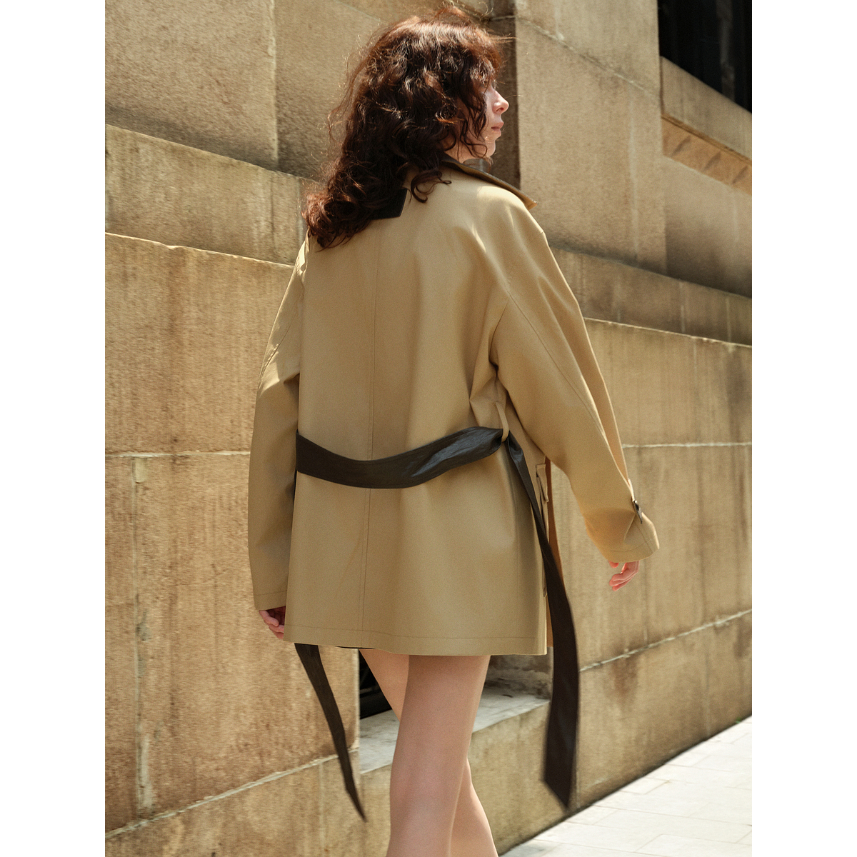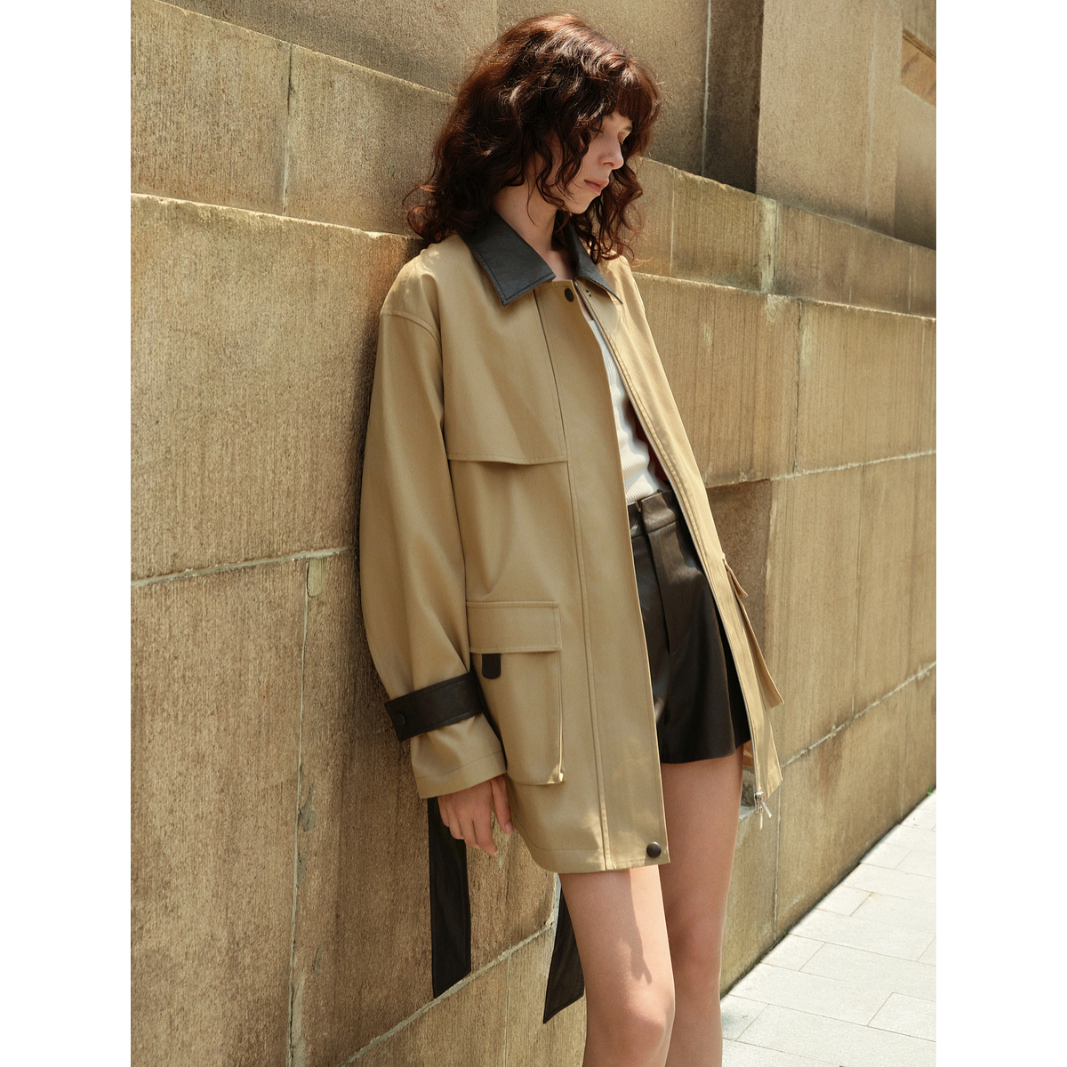 廓形休闲风衣 ELLE卡其巴恩风复古拼接短外套女2025秋新款 自营