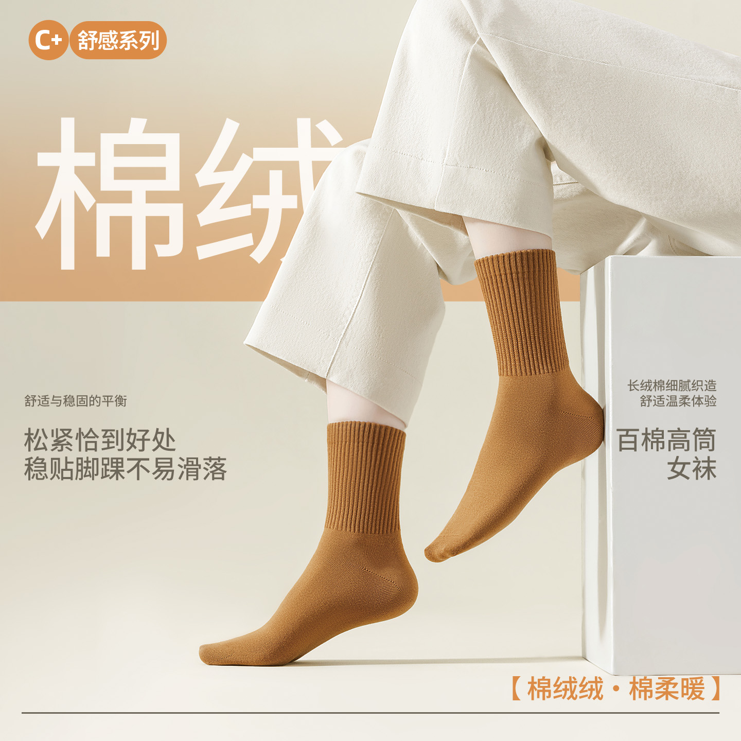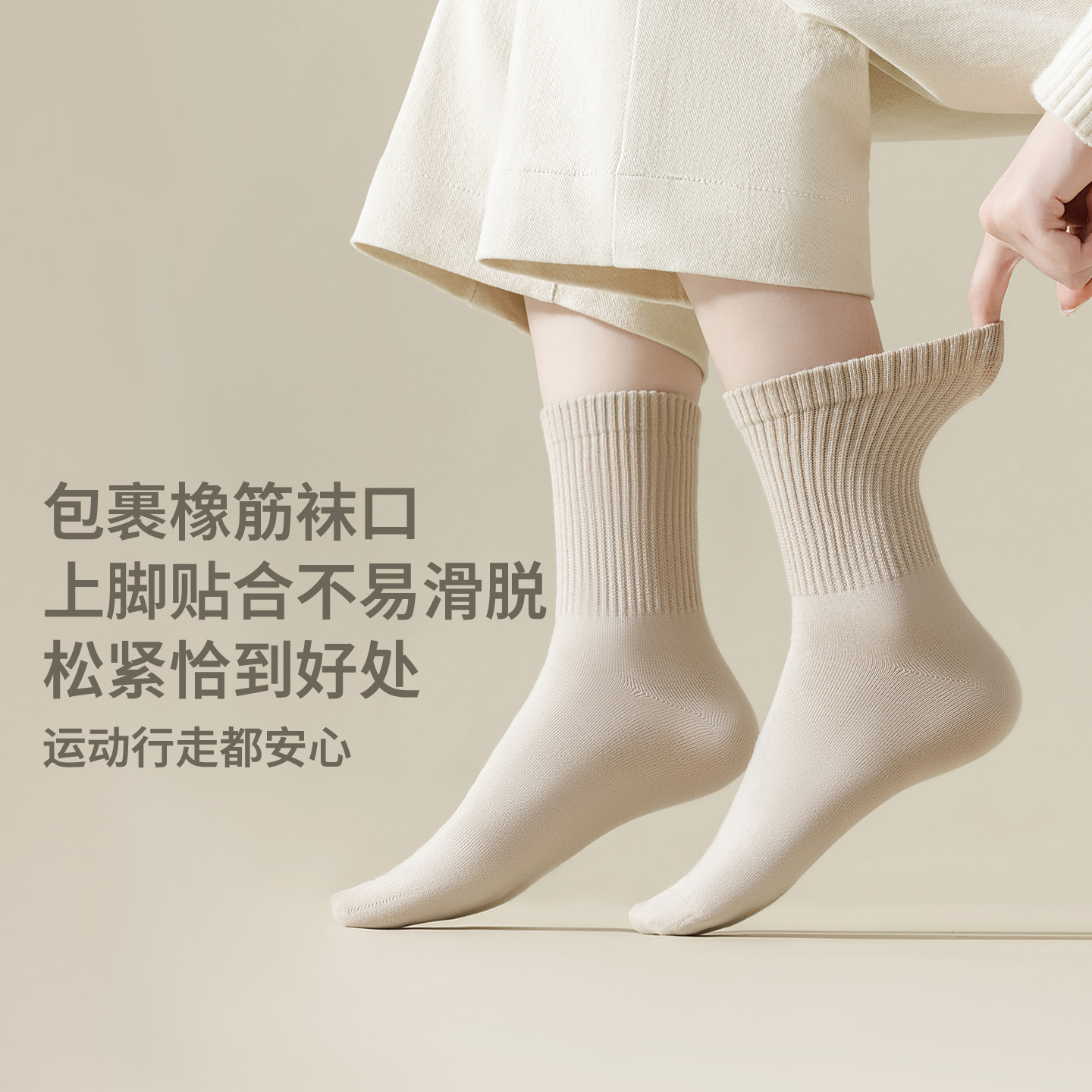 亲相见袜子女纯棉防臭中筒袜10A级抑菌100%棉女秋季 女士高筒袜