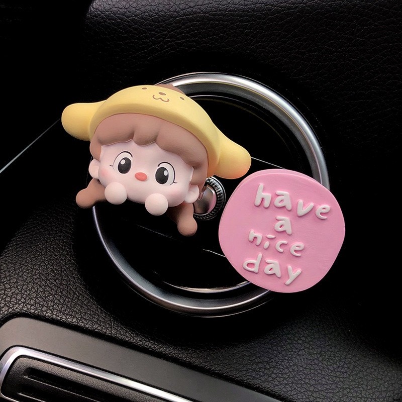 可爱冰激凌女孩车载香薰汽车出风口装 饰品香水车内饰品摆件扩香石