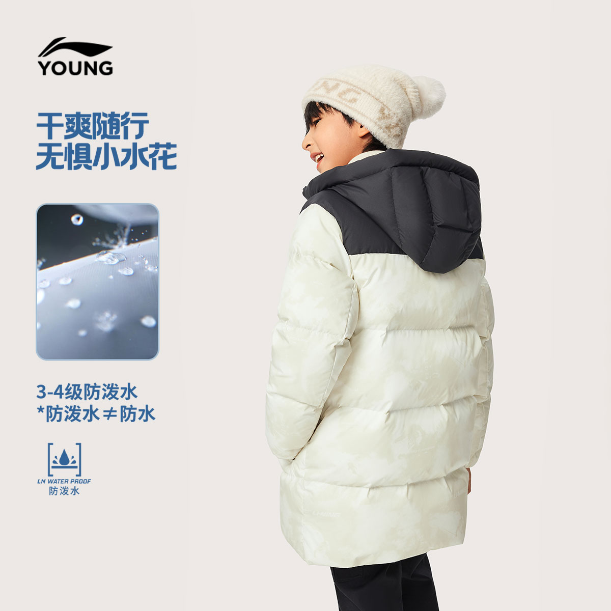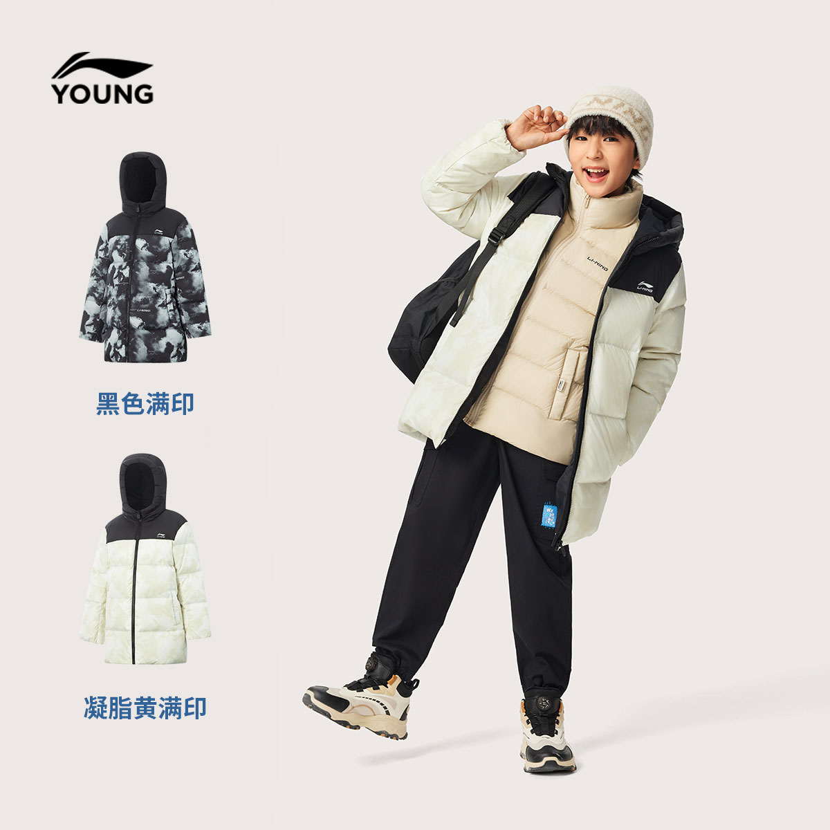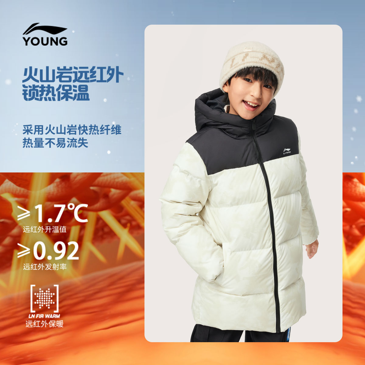 衣服保暖鸭绒上衣连帽防风加厚运动外套男 长款 李宁羽绒服男士 冬季