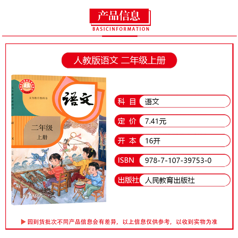新改版 人民教育出版 人教版 义务教育教科书语文书课本小学生语文教材2上语文课本 社RJ人教语文2二上册 小学语文二年级上册 2025年