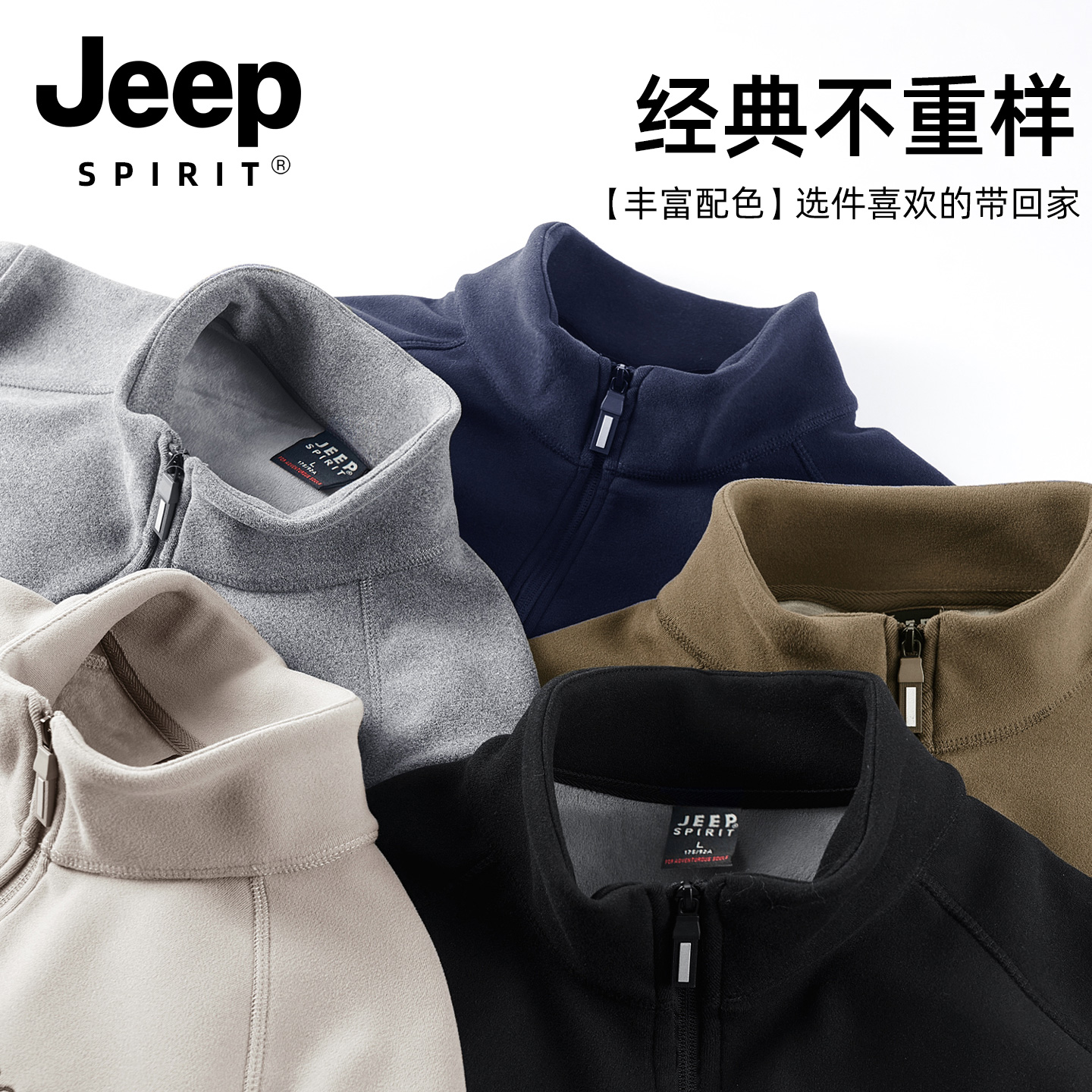 套头高级感 加绒加厚长袖 JEEP SPIRIT吉普卫衣男立领半拉链秋冬季