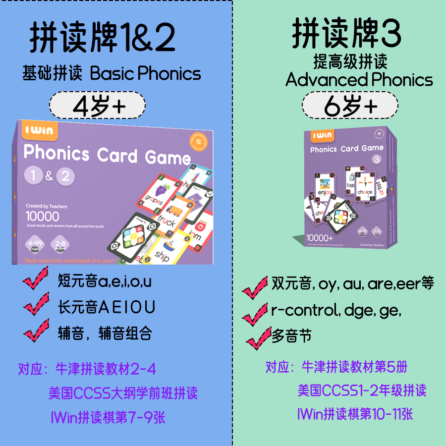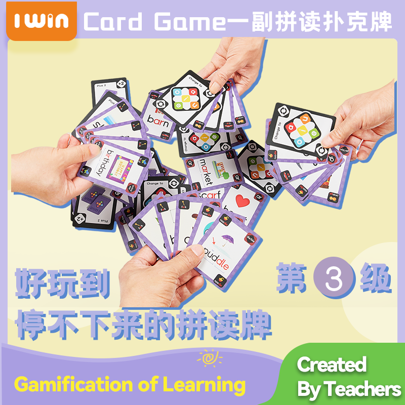 音多音节配对游戏CVC带美音教学 Win英语自然拼读扑克牌桌游双元