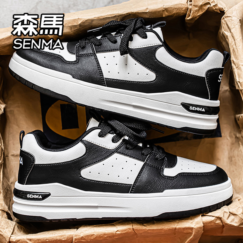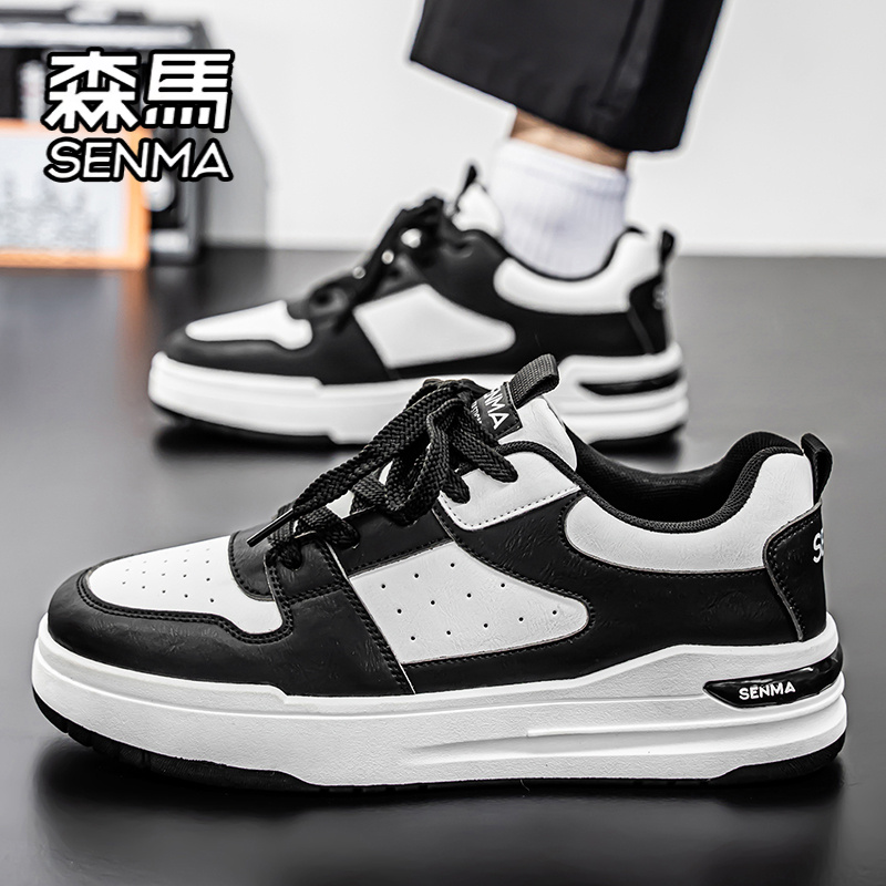 学生真皮运动增高小白鞋 高级感百搭休闲黑白熊猫板鞋 秋季 森马男鞋