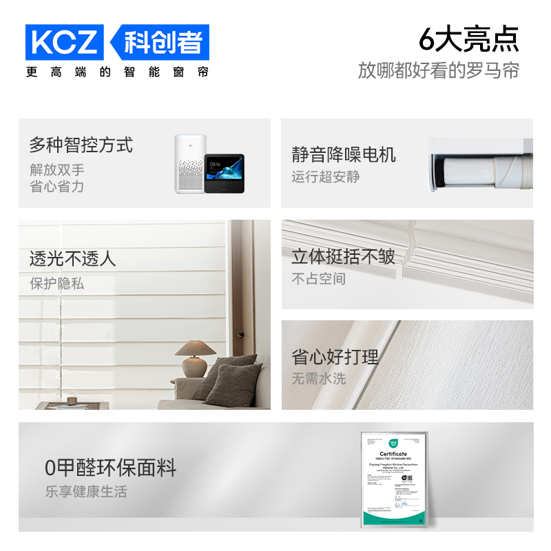 科创者电动罗马帘双层遮阳亚麻纱帘客厅办公室智能折叠卷帘百叶帘
