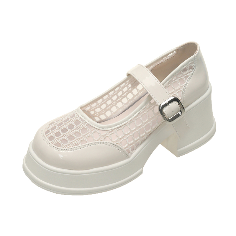 透气网面粗跟厚底浅口小皮鞋 小个子玛丽珍单鞋 薄款 新款 女2025夏季