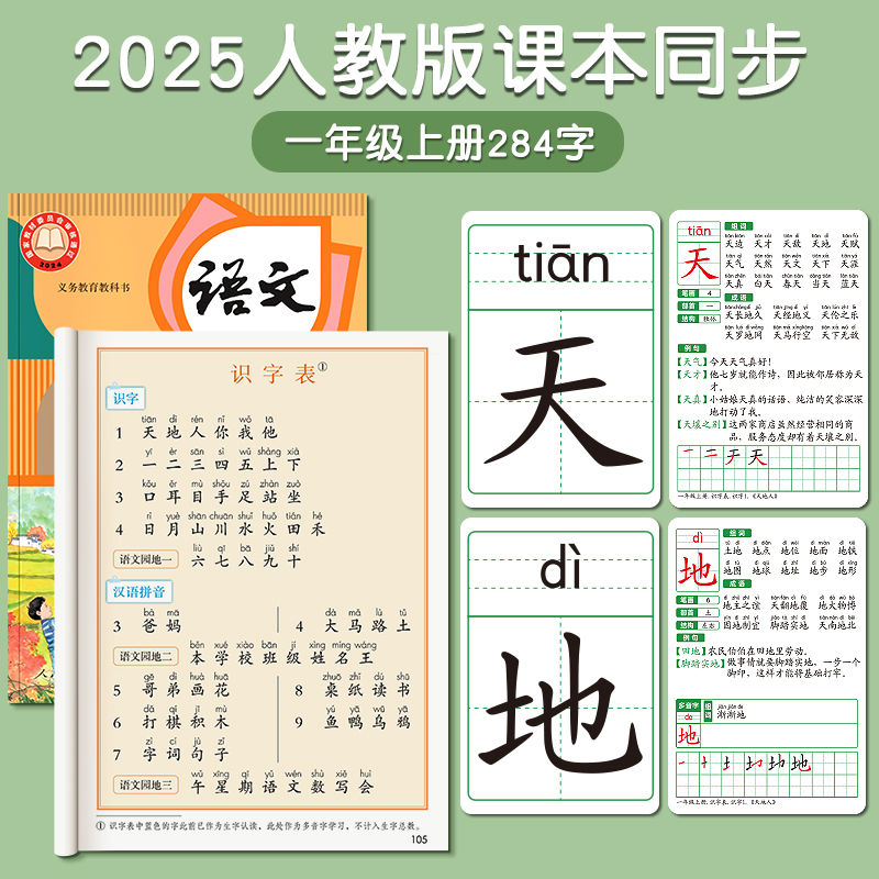 一年级大号识字生字卡片认字2025人教版 老师教学田字格拼音大尺寸