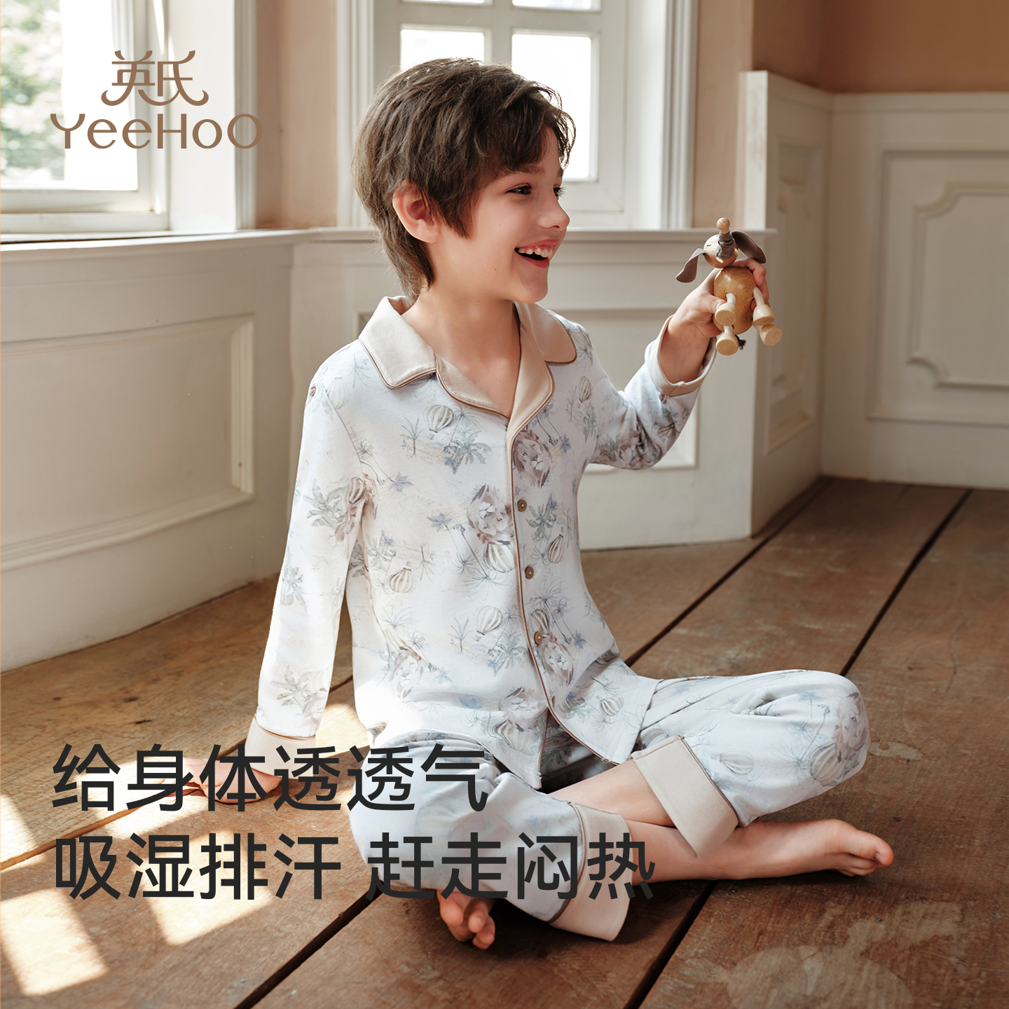 家居服套装 男士 青少年学生男孩大童2025年新款 纯棉长袖 睡衣春秋款