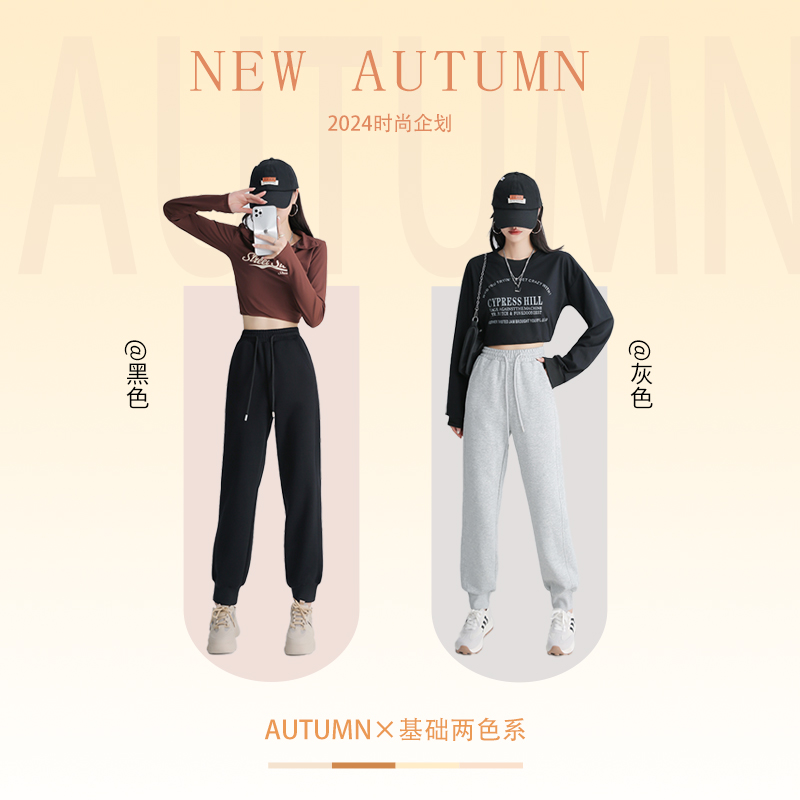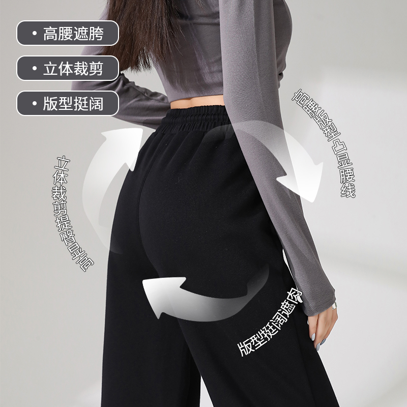 高腰小个子直筒休闲卫裤 新款 子女2025秋季 班尼路黑色束脚运动裤