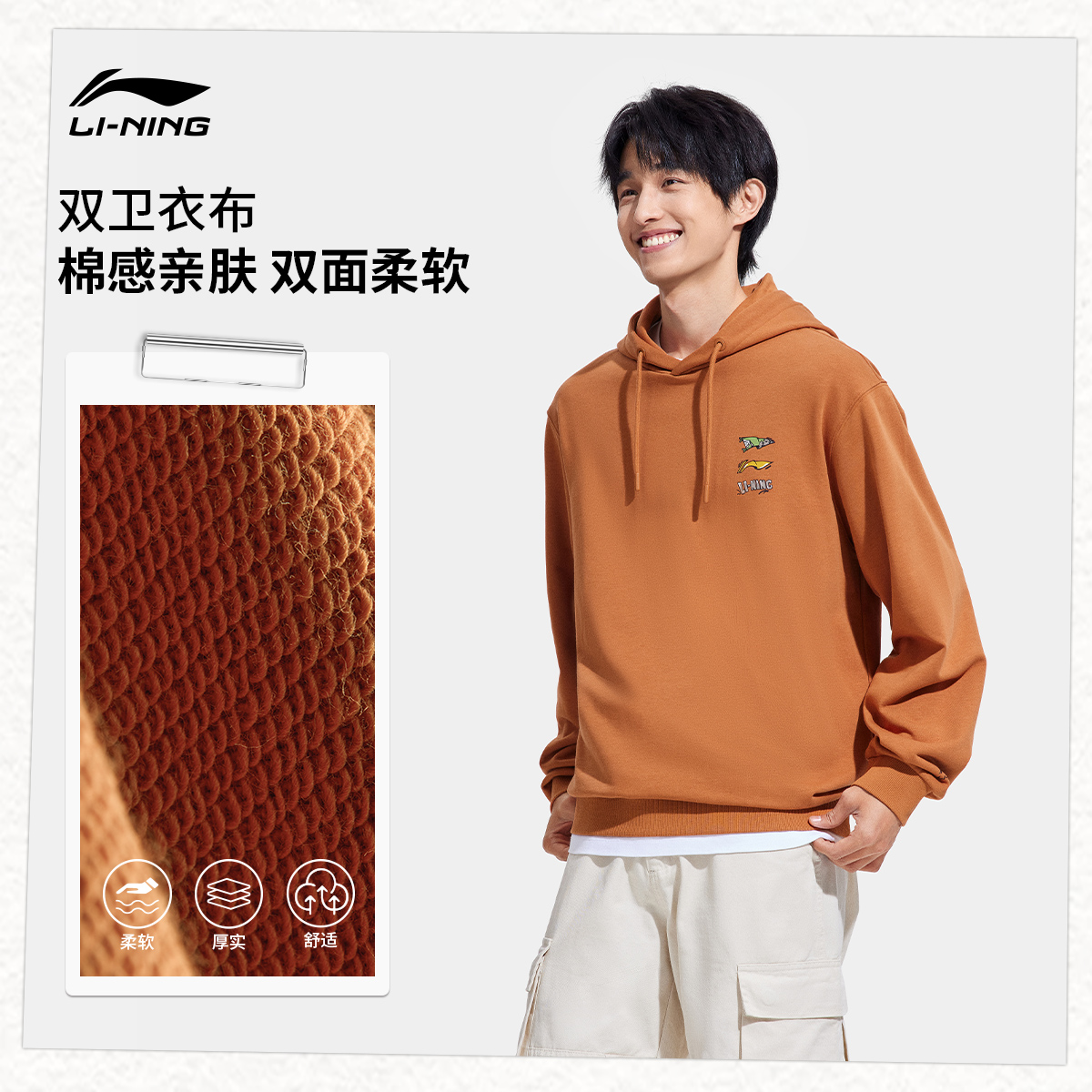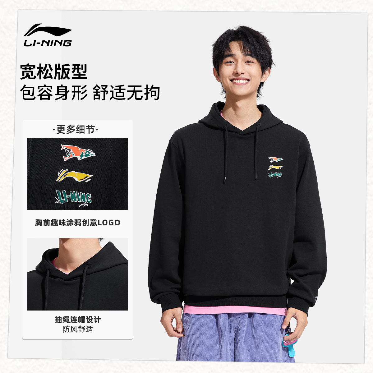 t恤男士 李宁卫衣男款 青少年长袖 新款 圆领套头加绒运动上衣 秋冬季