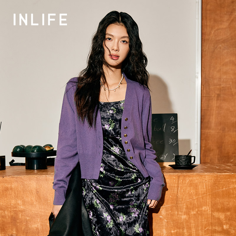宽松慵懒风短款 女2025秋新款 毛衣外套 气质v领针织开衫 伊纳芙法式