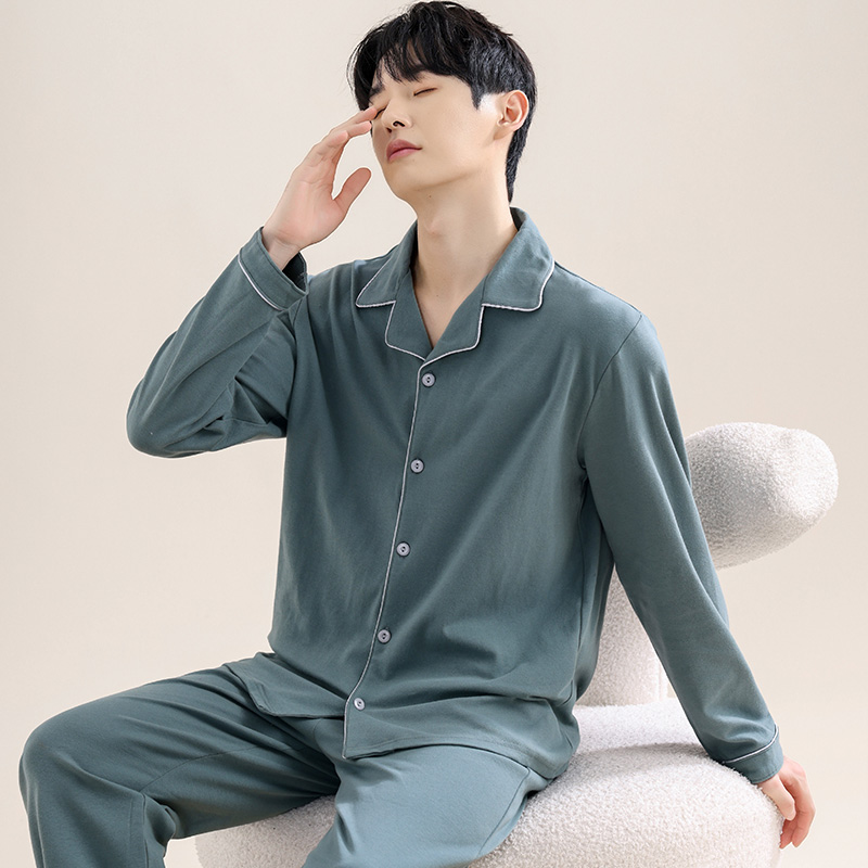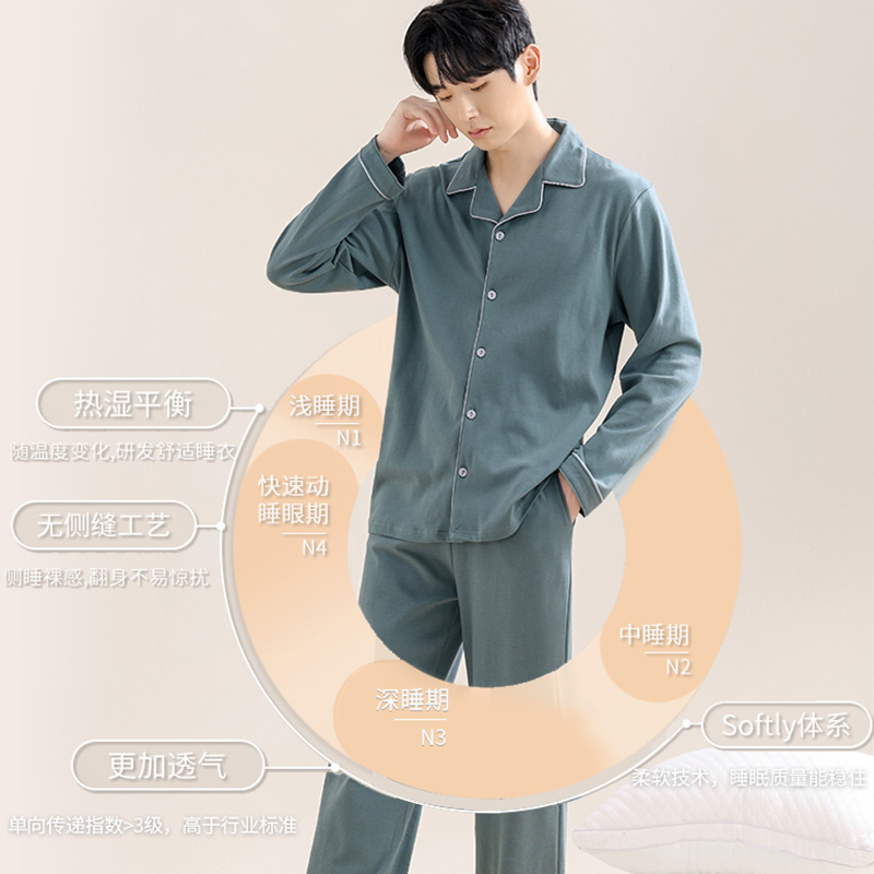 春秋季 2025新款 长袖 套装 纯棉家居服可外穿两件套 长裤 罗蒙睡衣男士