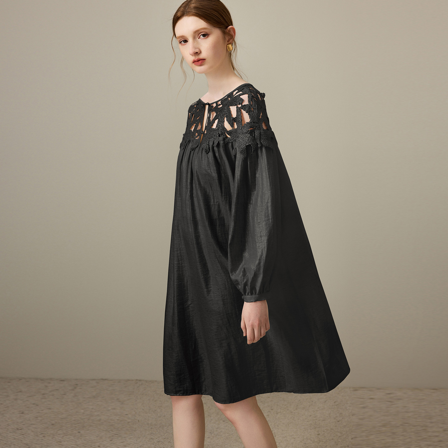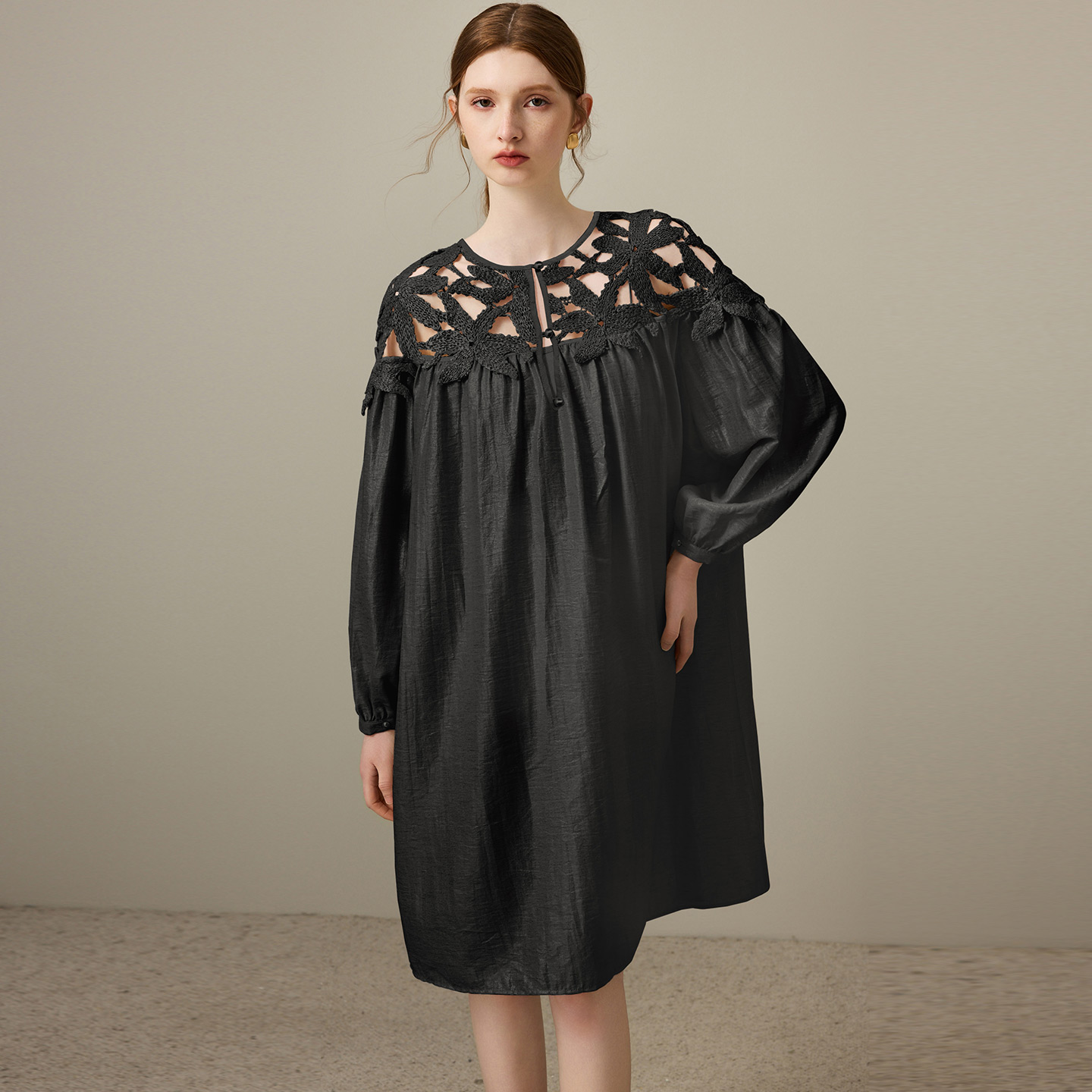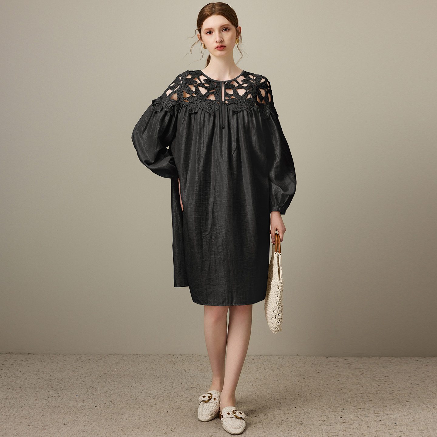 新款 连衣裙女2025年秋季 宽松慵懒度假风中长裙子 镂空长袖 dfvc法式