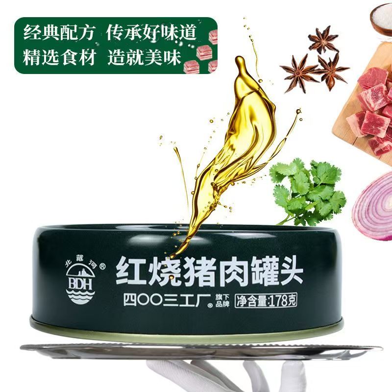 北戴河红烧猪肉罐头野营开罐即食方便速食批发应急压缩保质期整箱