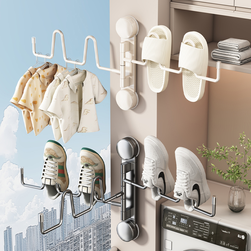 架收纳神器 阳台晾晒衣架家用浴室旋转挂鞋 吸盘晾鞋 架免打孔壁挂式