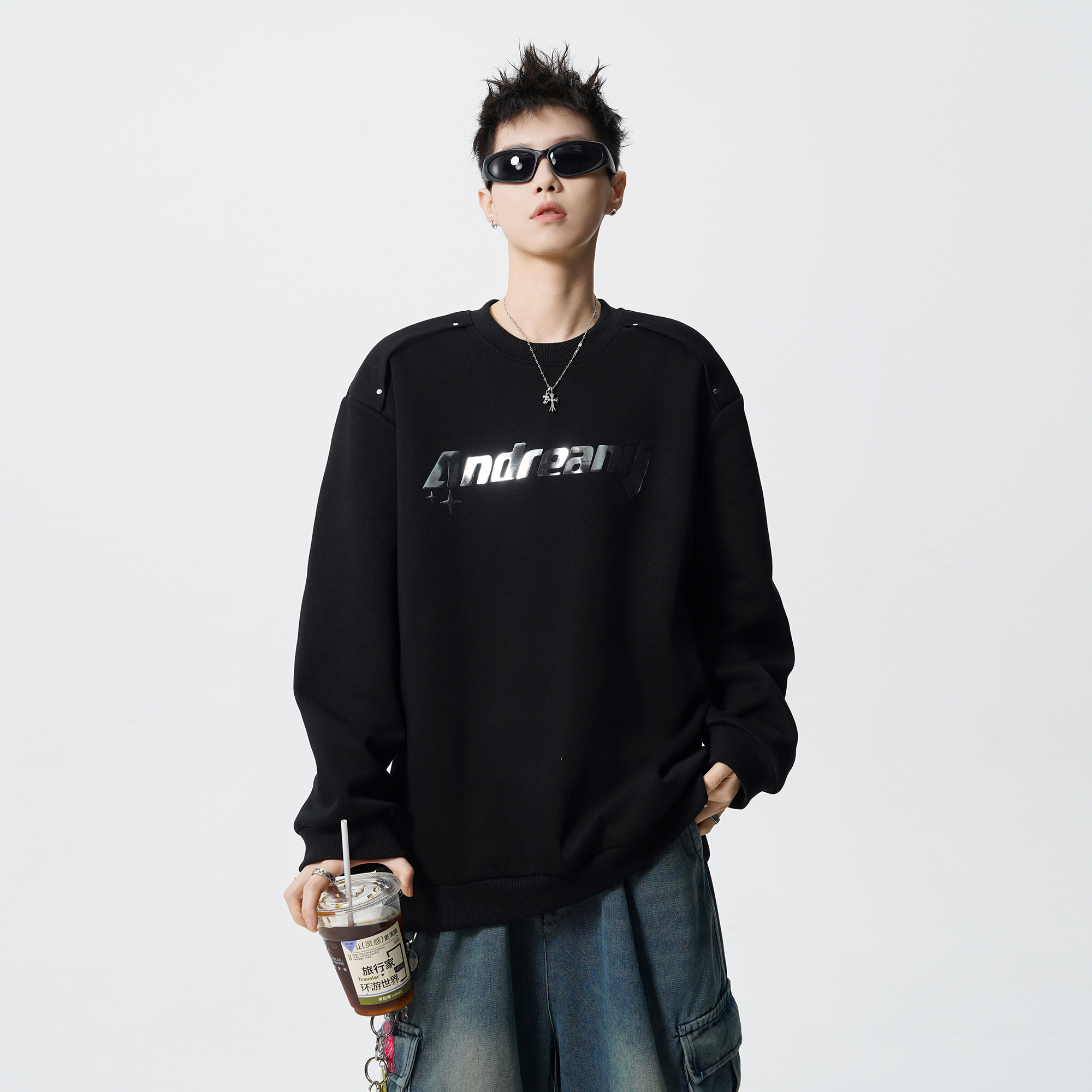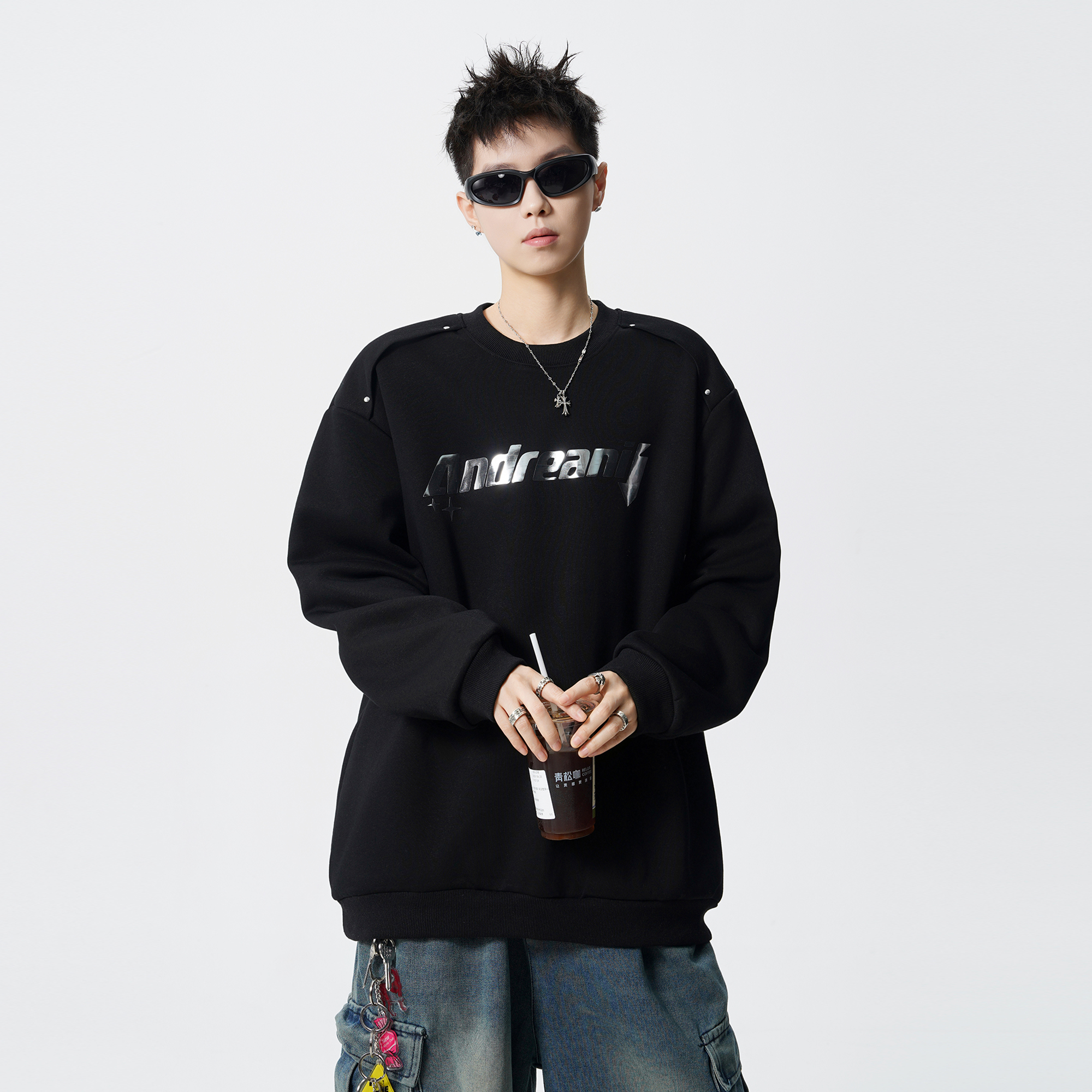 潮牌宽松高街痞帅青少年打底衫 新款 字母印花卫衣男女2025秋季 美式