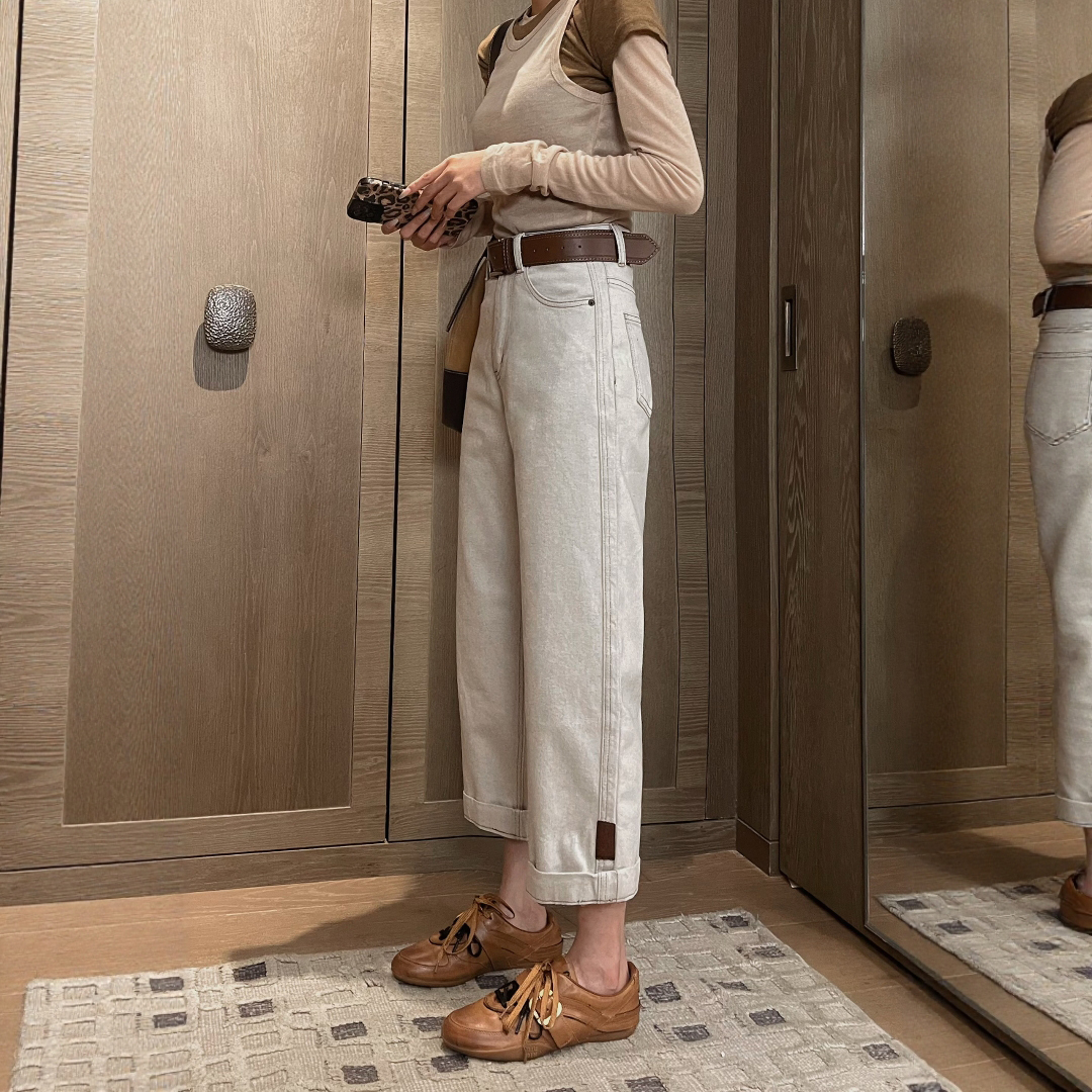 子烟管裤 2025秋冬新款 法棍裤 女宽松高腰休闲八九分窄版 直筒牛仔裤