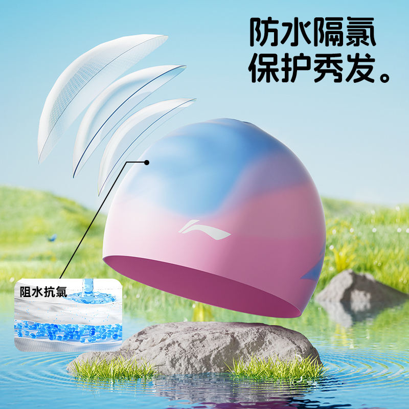 李宁泳帽女款 长发加大女士专用硅胶 防水不勒头女孩初中生2025新款