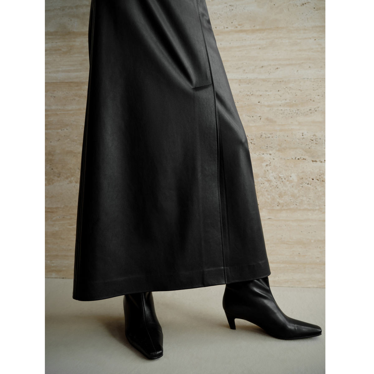 艾诺丝雅诗 40913565 复古高腰侧开叉A字皮裙女休闲垂感半身裙秋季