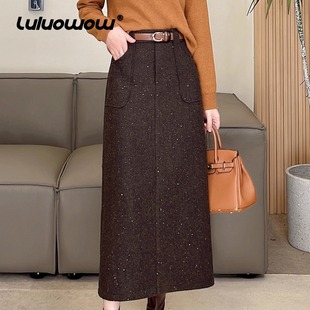 优雅菱格简约H型长裙 时尚 秋水伊人毛呢设计半身裙2025年冬季 新款