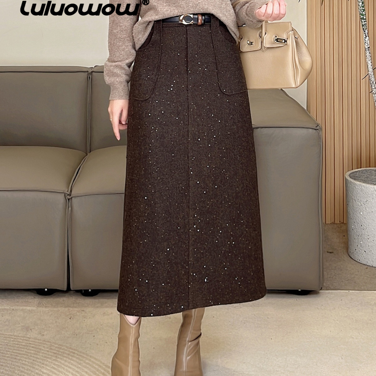 新品 气质通勤2025秋季 羊毛a字毛织半身裙中长款 OCHIRLY欧时力