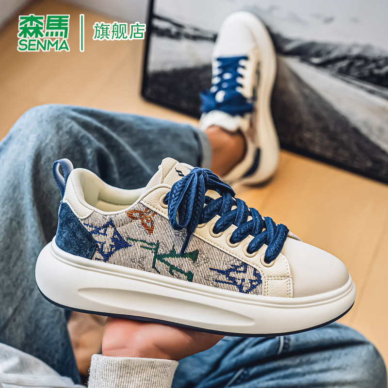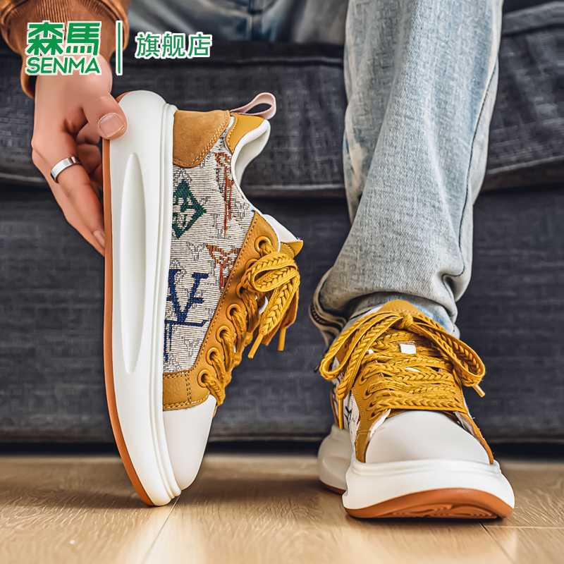 青少年休闲百搭轻便防滑运动潮鞋 小众设计厚底板鞋 男 秋季 森马男鞋