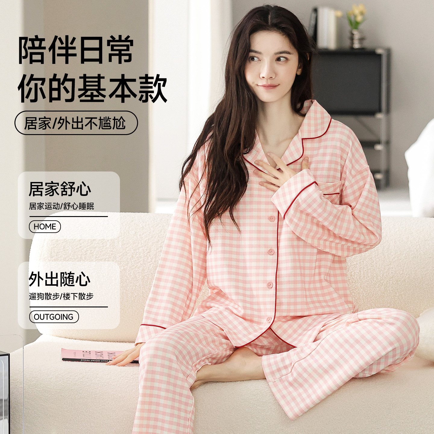 可爱卡通家居服套装 长袖 带胸垫 2025新款 猫人纯棉睡衣女士春秋冬季