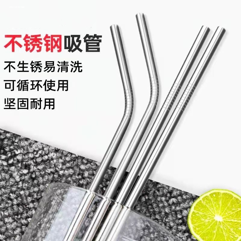 304不锈钢加长吸管循环使用环保创意咖啡果汁奶茶弯头便捷吸管