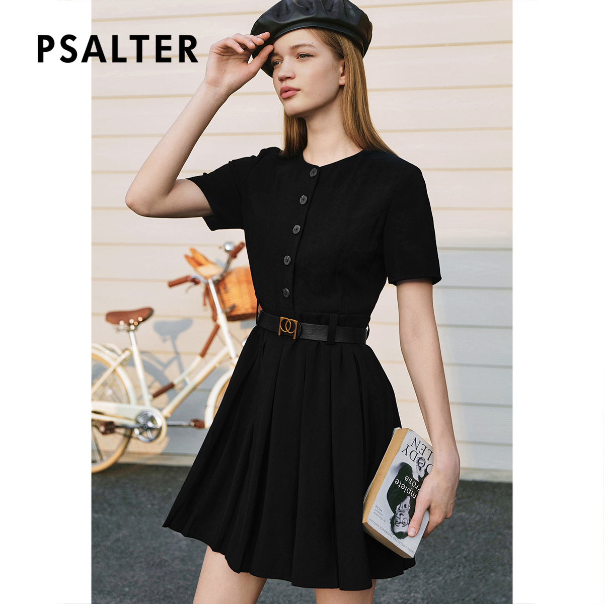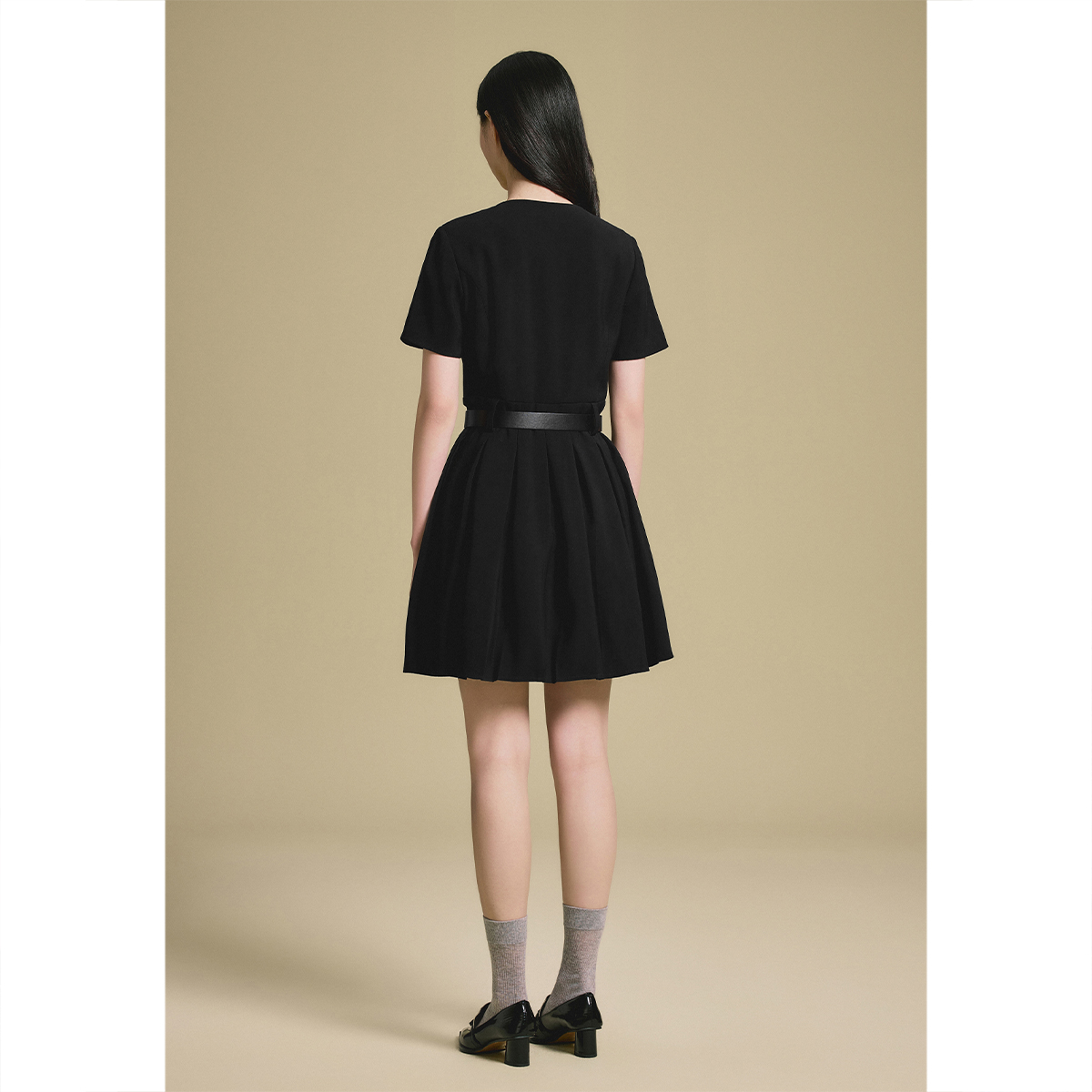 气质流行显瘦穿搭2025夏季 OCHIRLY欧时力 A字黑色连衣裙长裙法式