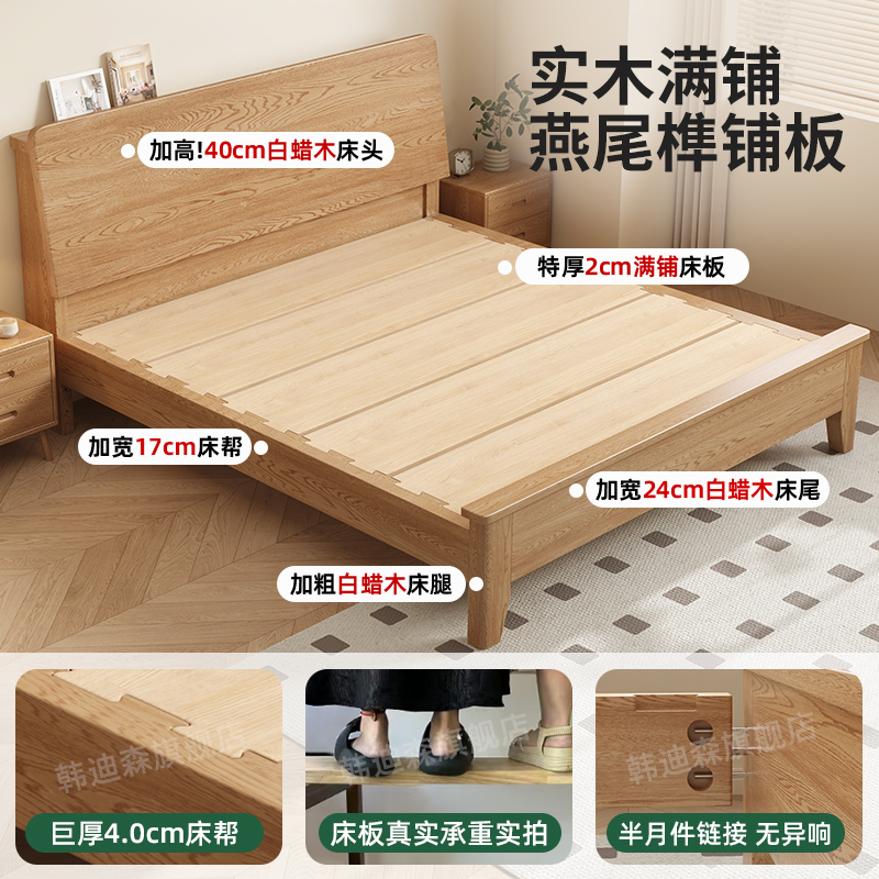 全实木床现代简约白蜡木榫卯床主卧1米8双人床出租房1.2M单人床架