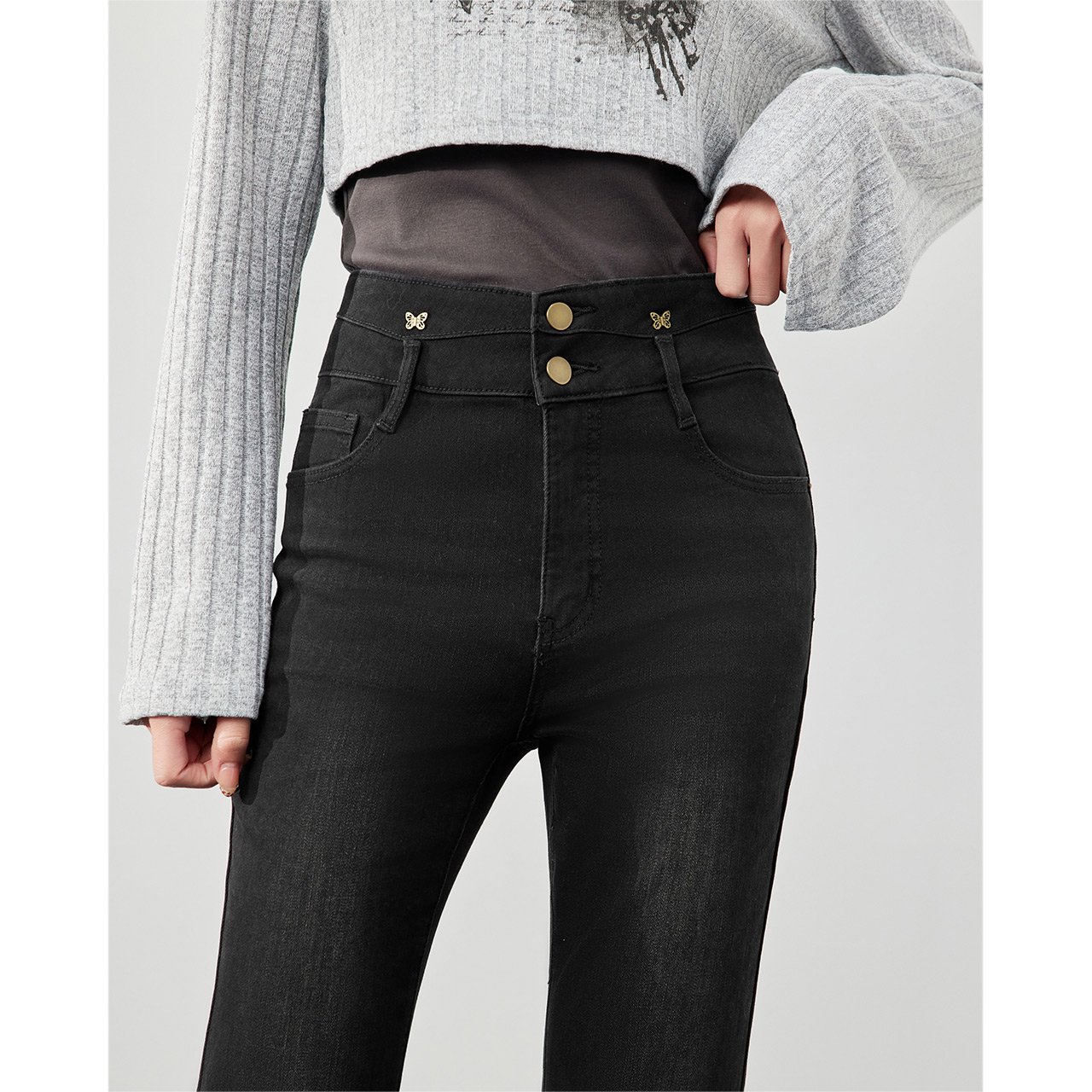 弹力莱卡复古高腰黑色喇叭牛仔裤 新款 ONLY2025秋季 女 美腿神裤